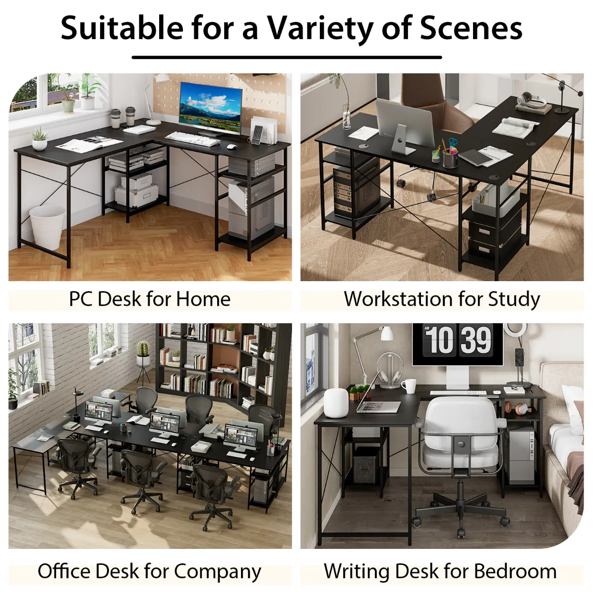 Hoekbureau in L-vorm: Als je kiest voor een ruimtebesparend hoekbureau, meet elk van de 2 zijden 151 cm lang en biedt voldoende werkruimte voor verschillende doeleinden, zoals kantoorwerk, leren en spelen. Bovendien zijn er in totaal 3 ingebouwde kabelgeleidingsgaten die het gemakkelijk maken om de kabels netjes te houden.
