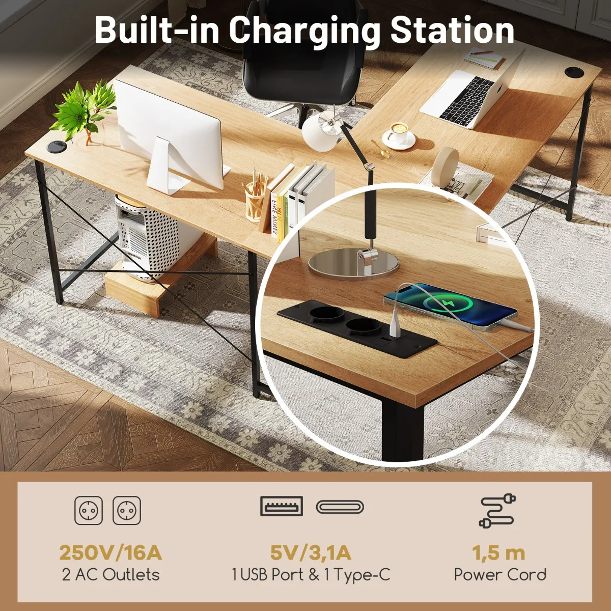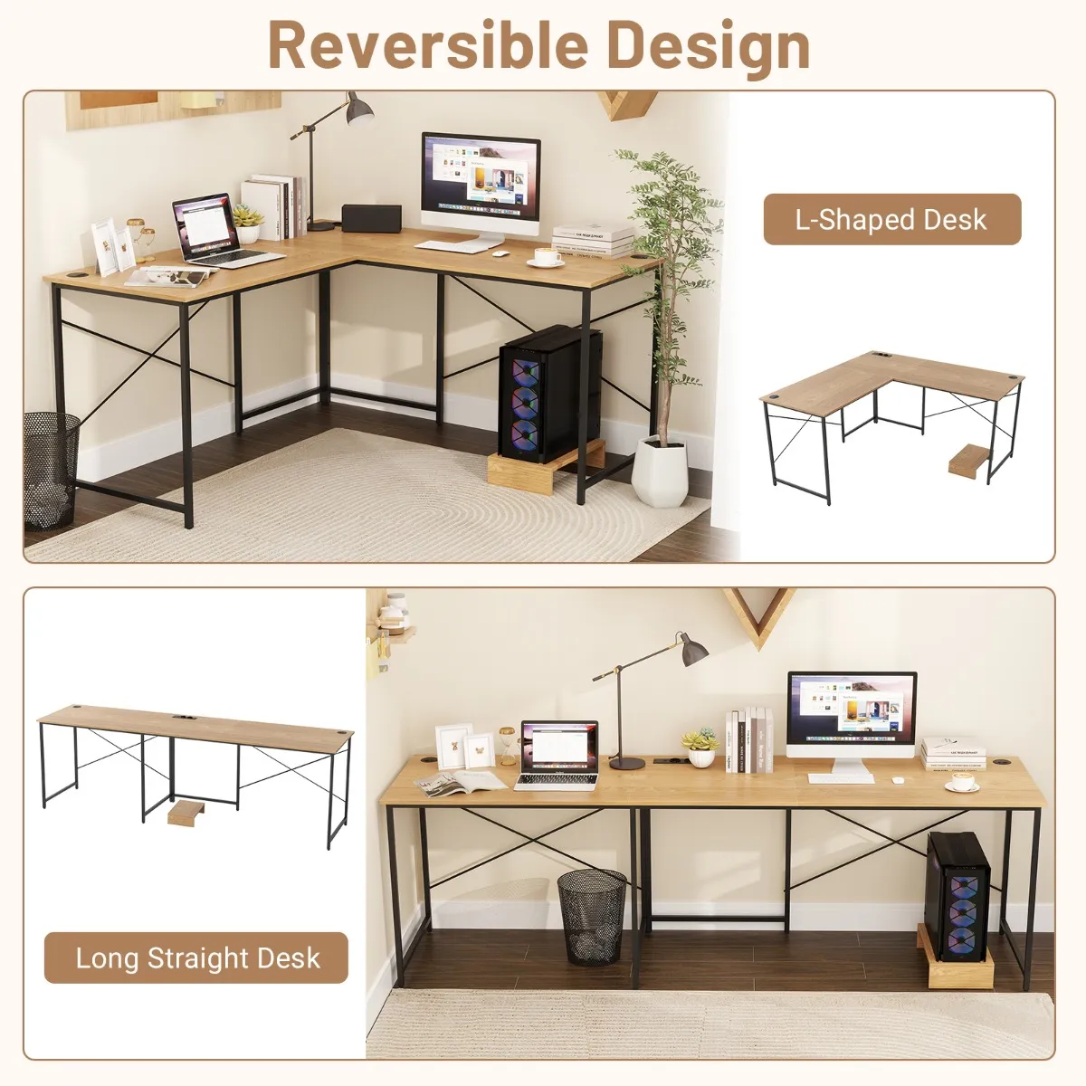 Ons aanpasbare L-vormige computerbureau maximaliseert efficiënt je werkruimtes. Hij kan naadloos van L-vormig naar lang recht wisselen en past zich aan elke indeling van de ruimte aan. Met ingebouwde stekkerdoos voor 2 AC-stopcontacten, USB- en type C-poorten is het opladen van apparaten eenvoudig. De beweegbare CPU-standaard kan ook als monitorstandaard worden gebruikt. Door het stabiele metalen frame en X-vormige dwarsbalken biedt het bureau betrouwbare ondersteuning. Het ruime bureauoppervlak maakt effectief werken mogelijk. Voer probleemloos meerdere taken uit met ons omkeerbare hoekbureau.
