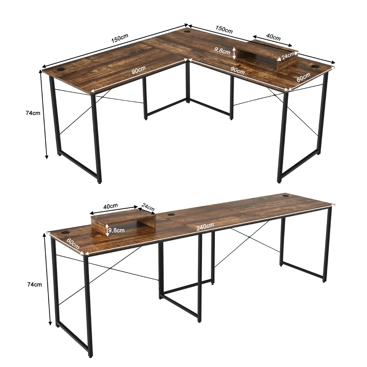 Ben je nog steeds gefrustreerd over het beperkte werkoppervlak? Laat ons omkeerbare L-vormige computerbureau je zorgen besparen. Door de robuuste metalen constructie heeft de computertafel een groot draagvermogen van 115 kg. En hij heeft ook verstelbare voetkussens voor een betere stabiliteit. Omdat klanten verschillende huistypes hebben, is het bureau omkeerbaar ontworpen. Je kunt hem tot een L-vormig bureau of een lang bureau monteren. De complete werkplek is zo ruim dat 2 personen tegelijkertijd kunnen werken. Bovendien is er op het bureau een beweegbare en antislip monitorplank die je laptop op de juiste kijkhoogte houdt, zodat je in een correcte houding kunt zitten.