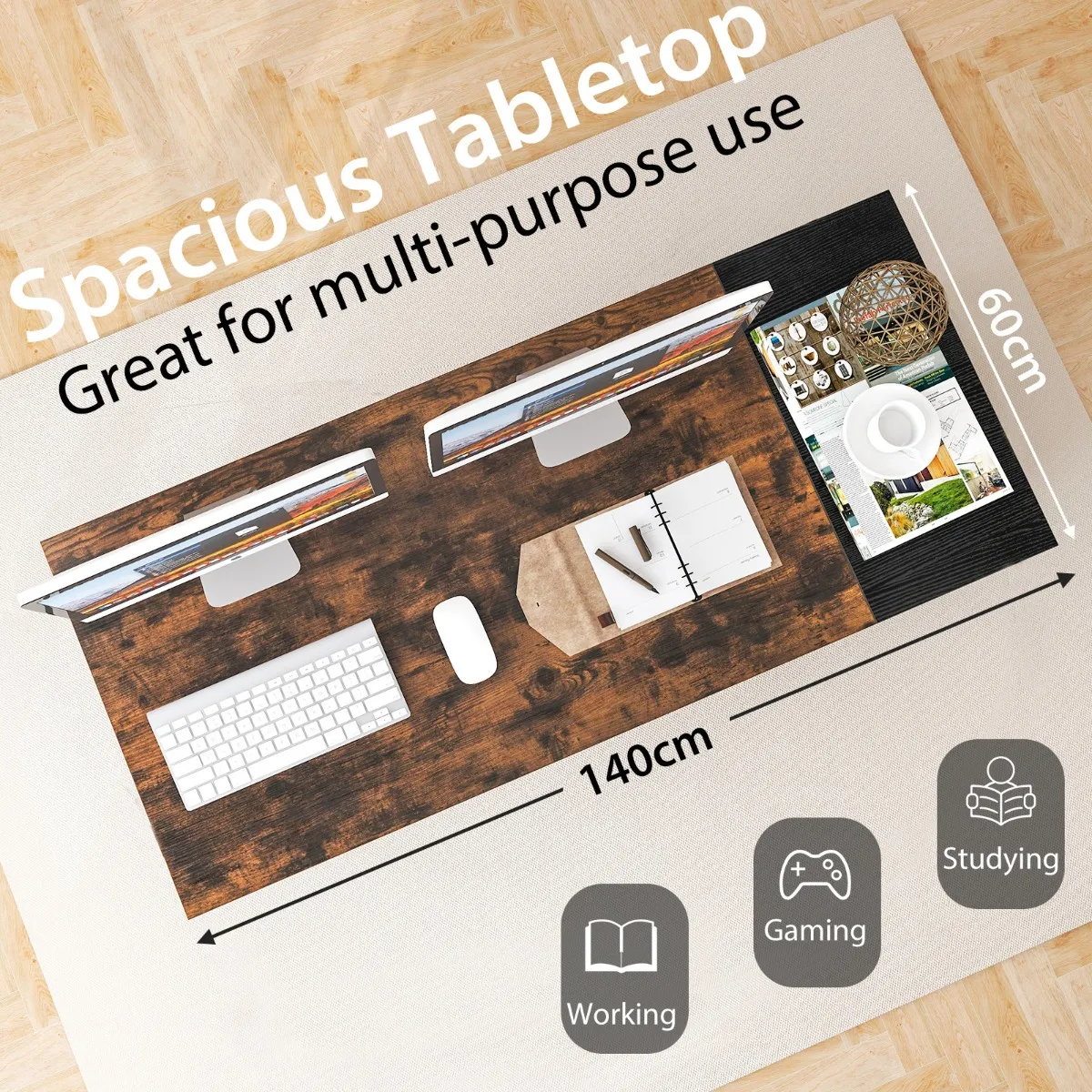 【Veelzijdig inzetbaar】 Het 140 x 60 cm grote tafelblad van het bureau bestaat uit tweekleurige panelen die een vleugje rustieke elegantie geven. Hij is ideaal voor veelzijdig gebruik en werkt uitstekend als werkplek, leertafel en speeltafel.