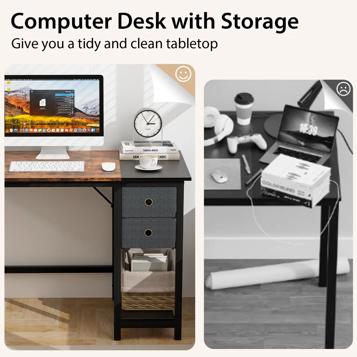 【Veel opbergruimte】 Dit bureau voor thuiskantoor beschikt over 2 ruime laden en een onderste plank, perfect voor het organiseren van je kantoorbenodigdheden en voor een opgeruimde werkplek. Praktisch heeft hij ook een ophanghaak aan de zijkant voor je hoofdtelefoon of tas.