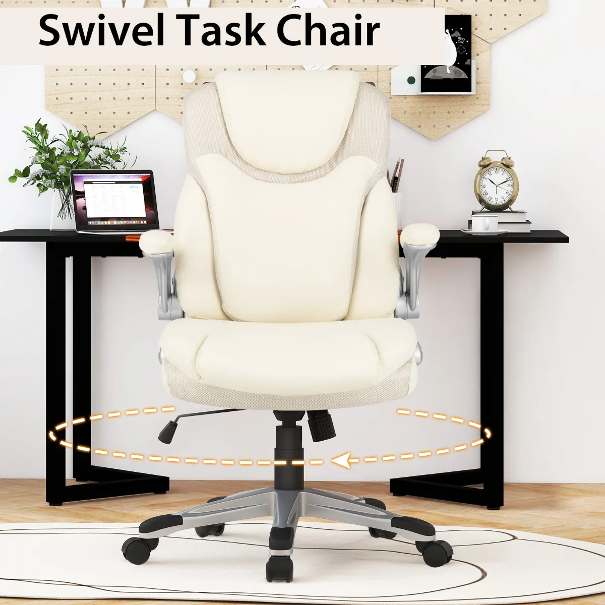 【Ergonomische rugleuning en opklapbare armleuningen】 Onze managersstoel beschikt over een ergonomische rugleuning, die zich perfect aan je lichaamscurve aanpast en optimale ondersteuning biedt voor schouders, rug en taille. Bovendien zorgen de 90° gevoerde, opklapbare armleuningen voor meer comfort en meer flexibiliteit.