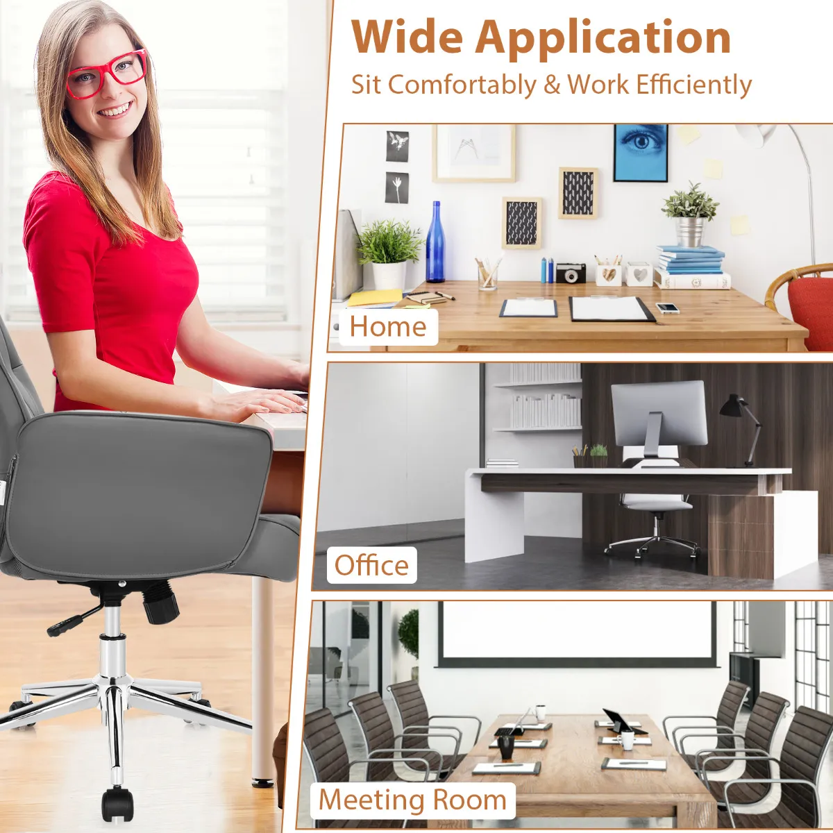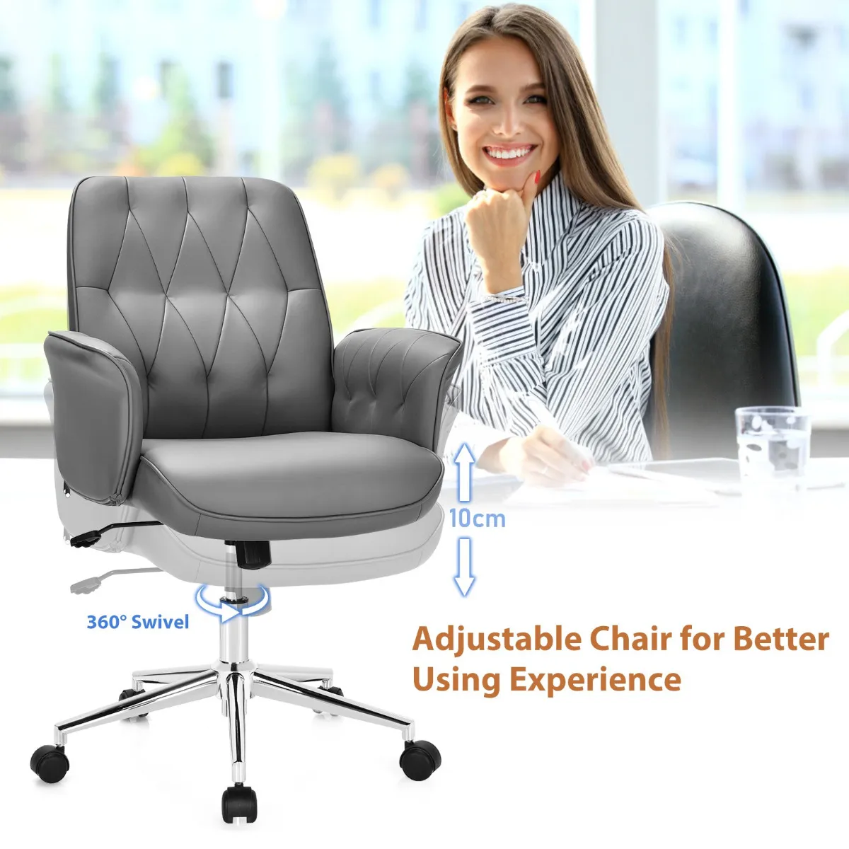 Moderne stijl en brede toepassing: Deze draaibare bureaustoel combineert een eenvoudig design en een elegante uitstraling en is een perfecte aanvulling voor je huis en kantoor. Dankzij het multifunctionele ontwerp kan deze stoel niet alleen als computerstoel worden gebruikt om te werken of te leren, maar ook als vrijetijdsstoel om te ontspannen.