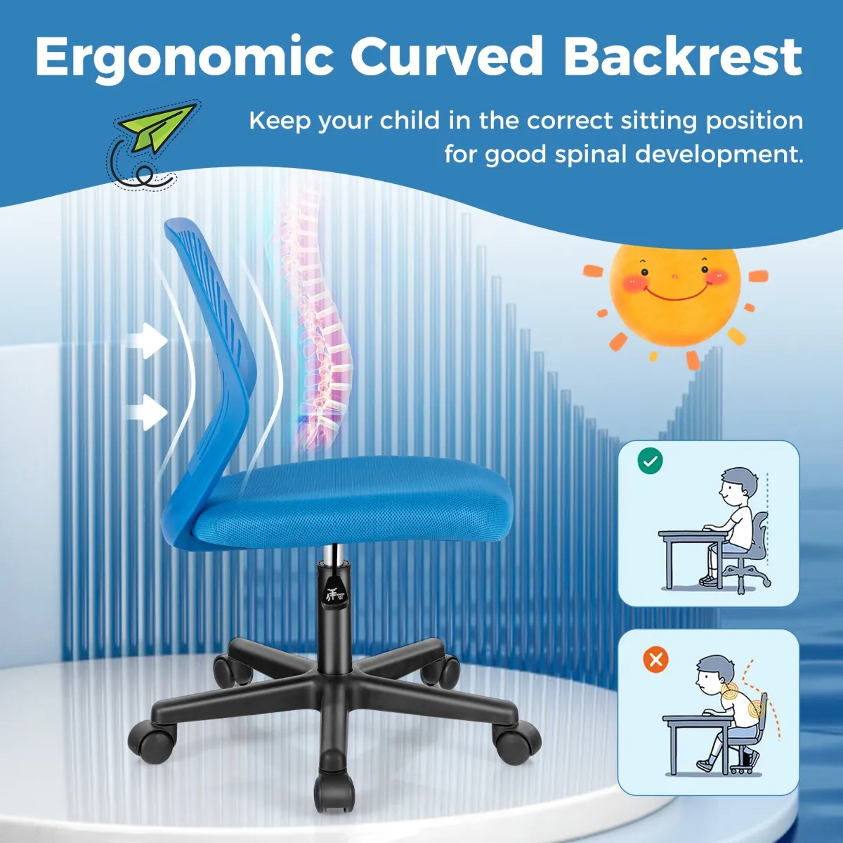 Upgrade je kantoor of leerruimte met onze ergonomische mesh-bureaustoel. Ontworpen om optimale grip te bieden voor lange werk- of leeruren, beschikt deze stoel over een ergonomisch ontwerp, dat zich perfect aan de rondingen van kinderen aanpast en de druk over het lichaam verdeelt. Het ademende mesh-oppervlak houdt je kind het hele jaar door koel en comfortabel, terwijl de brede rugleuning en de zeer elastische spons ervoor zorgen dat er geen vermoeidheid optreedt, ook na lang zitten. Met zijn in hoogte verstelbare ontwerp en robuuste constructie biedt deze stoel de perfecte mix van comfort en functionaliteit. Beweeg moeiteloos met 5 gladde universele wielen, en het armloze ontwerp maximaliseert het gebruik van de ruimte en maakt de stoel geschikt voor kleine ruimtes zoals slaapzalen of appartementen.