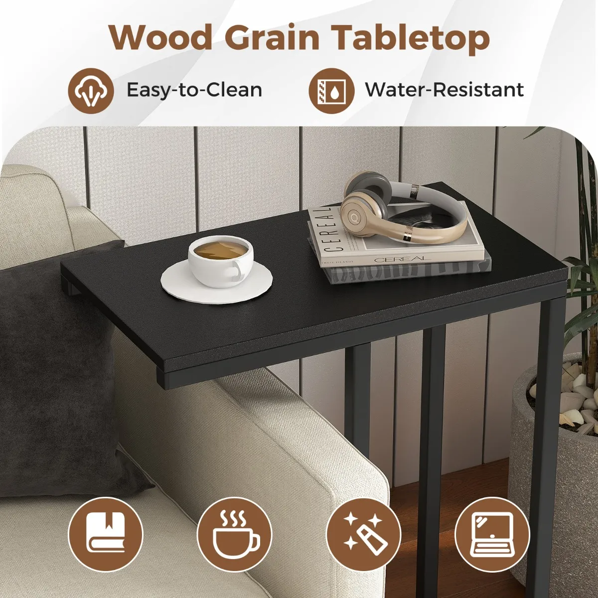 【Ruimtebesparend ontwerp】: Met een ruimtebesparend ‘C’-ontwerp is onze bijzettafel een geweldige keuze voor flats of kleine woonruimtes. Hij past perfect naast banken of naast je bed en biedt een compacte maar praktische plek voor je spullen.