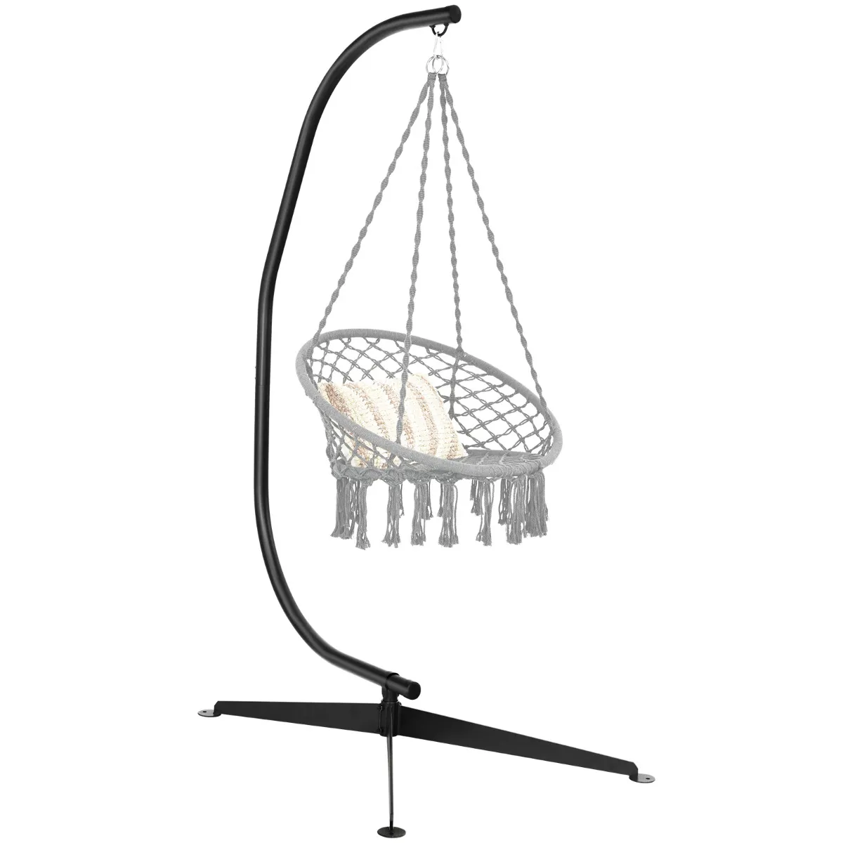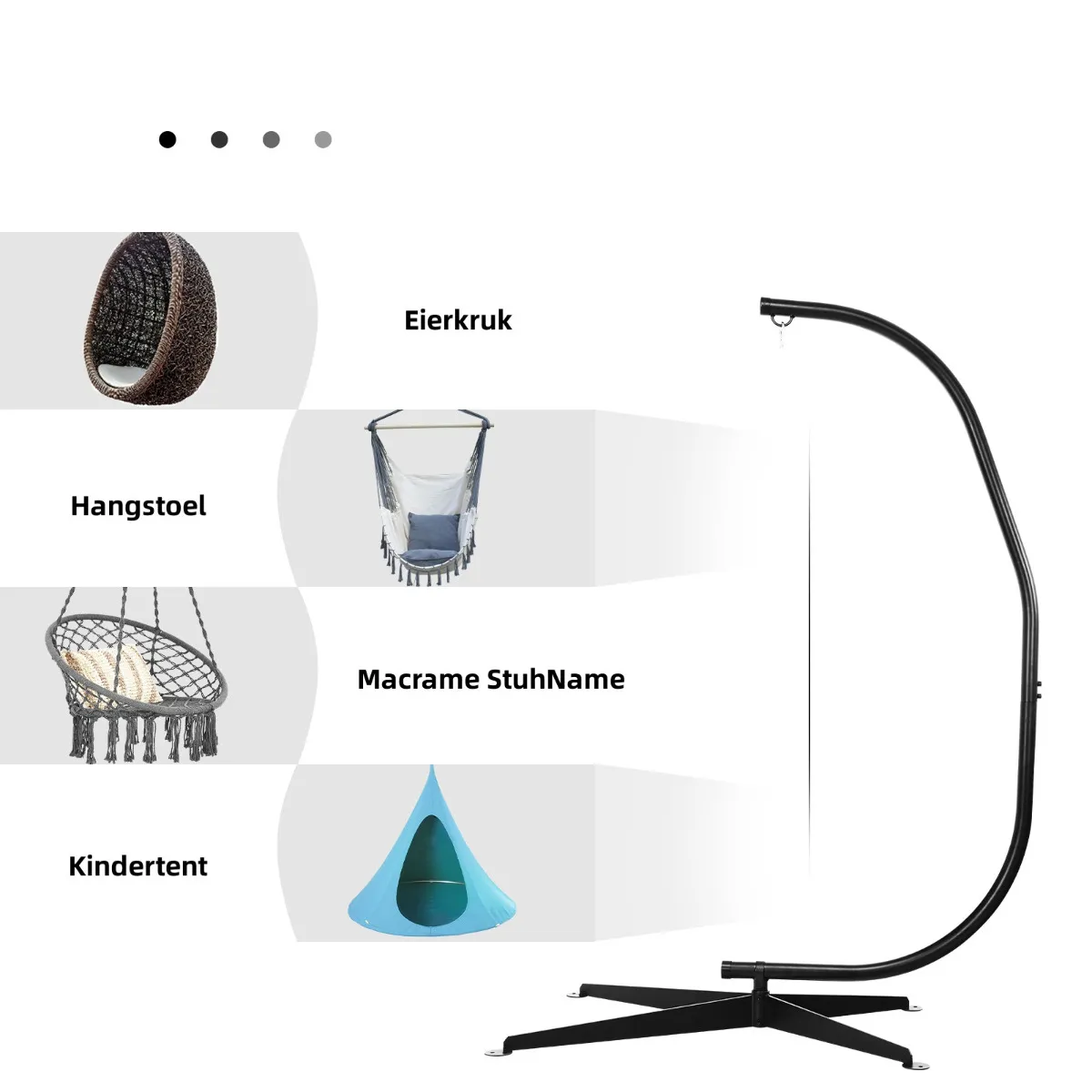 C-vormige hangstoel stand is een prachtige keuze voor u! De hangmat standaard met grote afmetingen staat u toe om vrij van grote zitruimte te genieten. De kruisvoet en het stevige frame laten onze standaard toe om stevig en stabiel te zijn. Gemaakt van duurzaam en hoogwaardig materiaal, kan onze hangmat standaard voor een lange tijd worden gebruikt. U kunt hem gebruiken waar u maar wilt. Bovendien voorzien wij u van alle accessoires en instructies om u te helpen het met gemak te monteren.