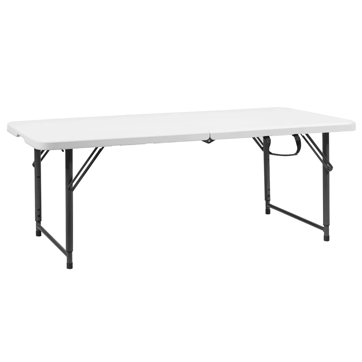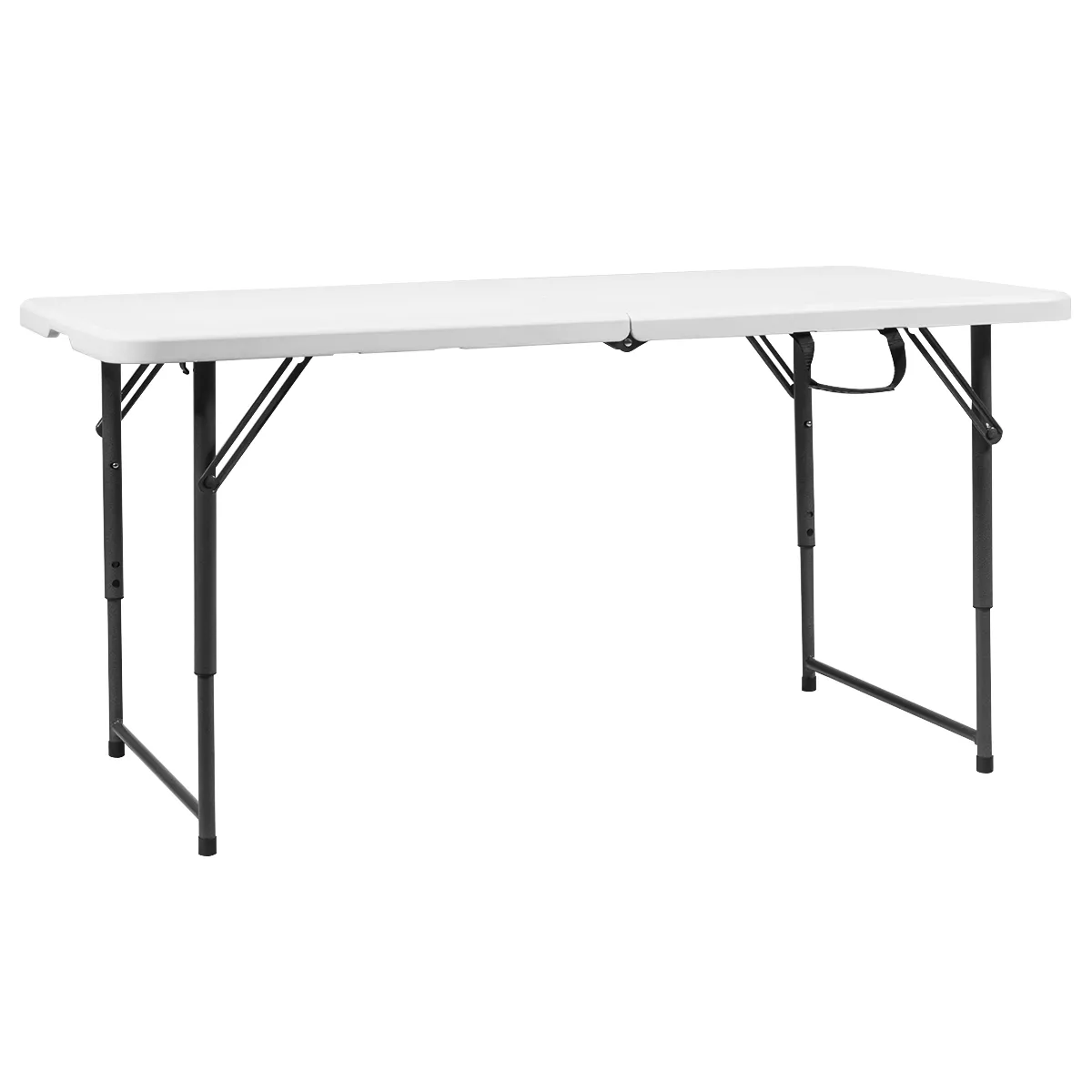 Metalen frame met grote stabiliteit: de klaptafel is gemaakt van gepoedercoat staal, dat een goede stevigheid en roestbestendigheid heeft. De steunbalken dragen ook bij aan de stabiliteit. Bovendien beschermen de antislip voetzolen de vloer tegen krassen.