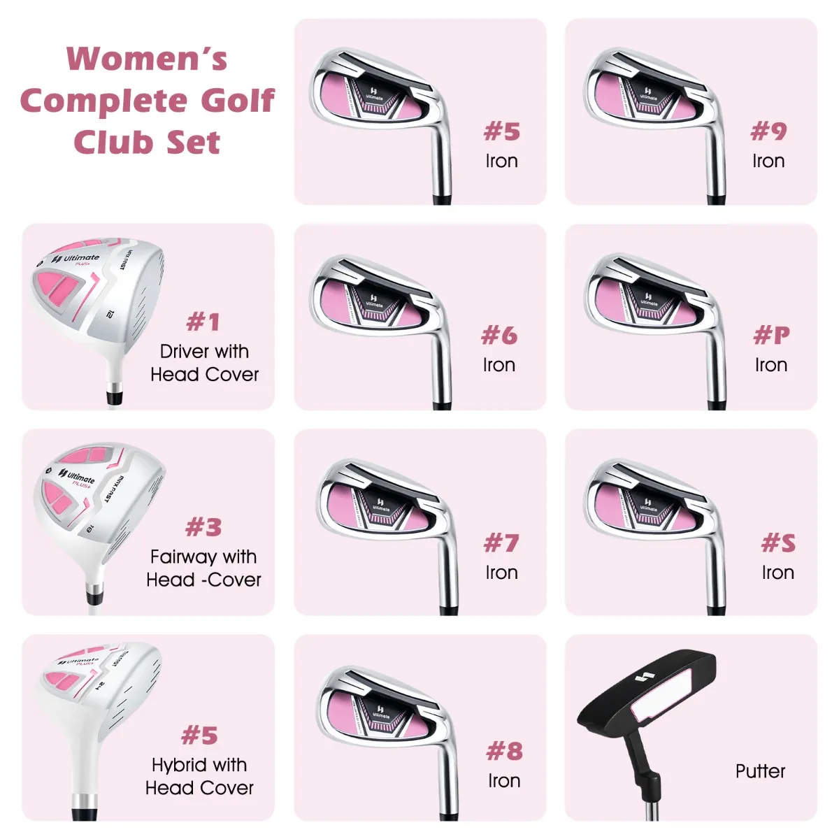 【Complete golfclubset voor vrouwen】 Deze golfclubset bevat alle essentiële clubs voor een succesvolle en aangename golfervaring. De meegeleverde standtas met dubbel gordelsysteem en 3 handgrepen is zo ontworpen dat hij op het veld veelzijdig en draagbaar is.