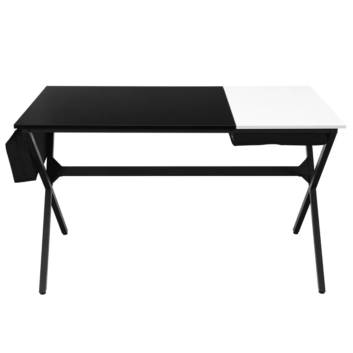 Duurzame, stevige structuur: Het tafelblad is gemaakt van hoogwaardig MDF en is stevig en duurzaam voor langdurig gebruik. Het dikke ‘X’-vormige metalen frame zorgt voor stabiliteit. Dankzij de in hoogte verstelbare voetsteunen kan ons bureau zich aanpassen aan ongelijke vloeren en stevig staan zonder te wiebelen.