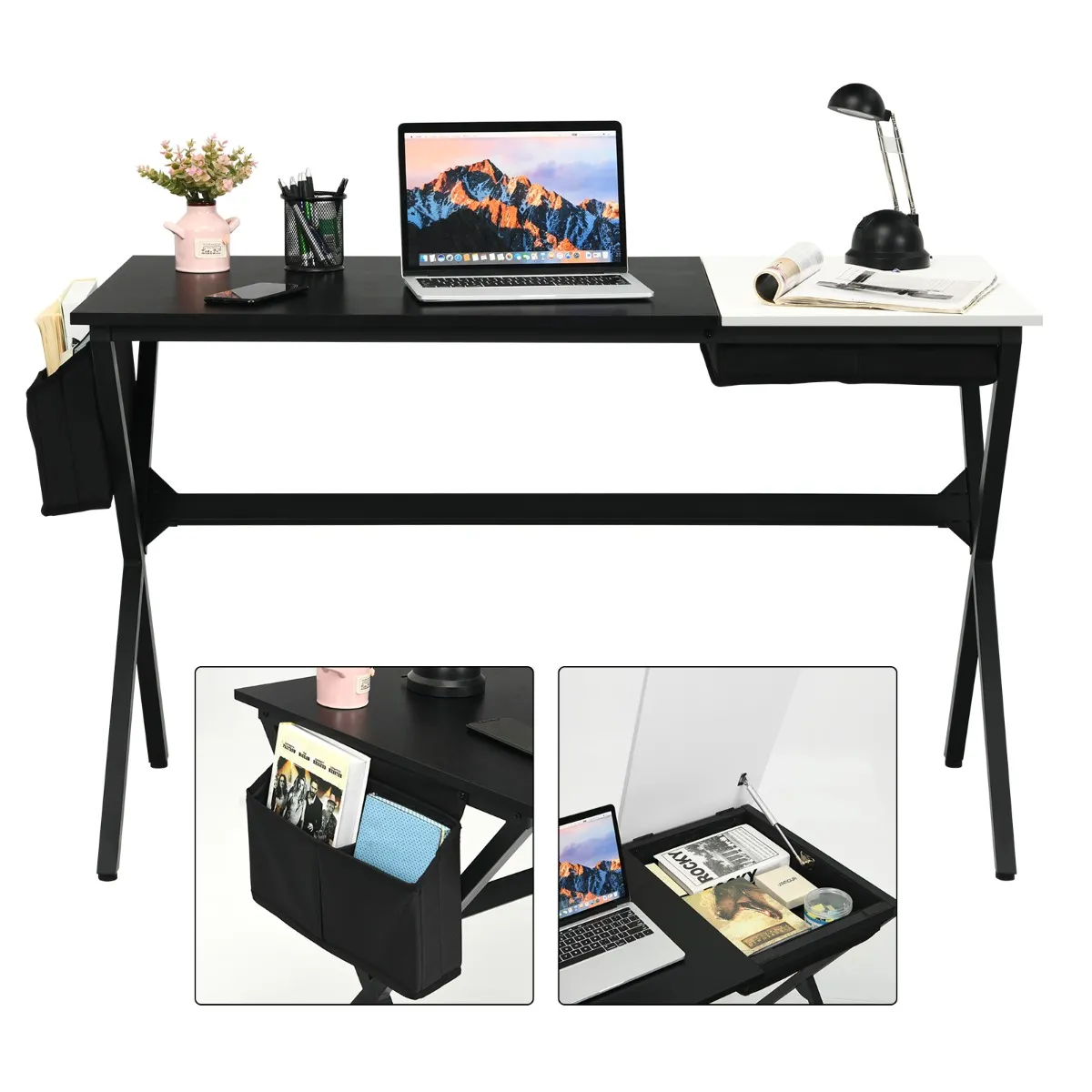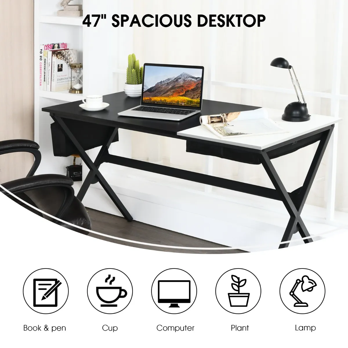 Ons computerbureau is een essentiële tafel om thuis of op kantoor aan te studeren, schrijven of werken! Een ‘X’-vormig gepoedercoat metalen frame met een hoogwaardig MDF tafelblad zorgt voor algehele stabiliteit. De geïntegreerde lade en opbergzak aan de zijkant zijn handig voor het opbergen van veel kantoorbenodigdheden. Dit bureau kan thuis worden gebruikt als computerbureau, studietafel of schrijftafel. Het kan ook worden gebruikt als zakelijk bureau. Met zijn moderne stijl kan het een unieke toevoeging aan je huis zijn!