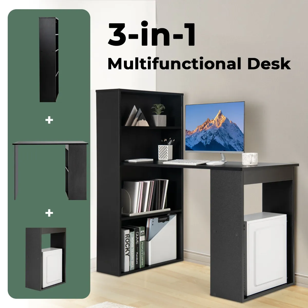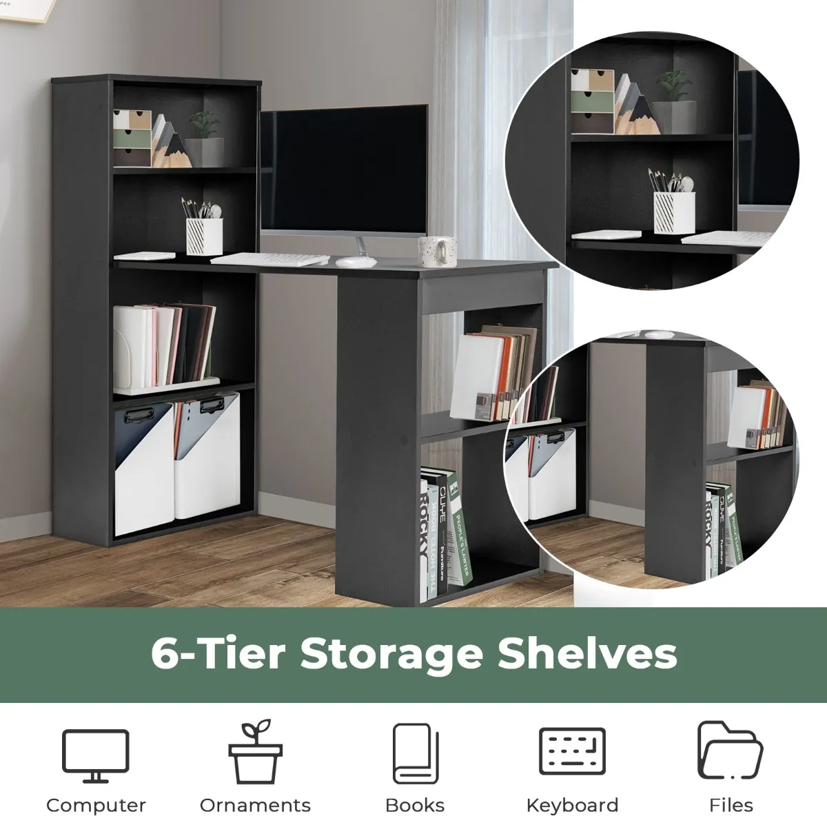 Grote planken met 6 niveaus: Dit computerbureau heeft royale opbergruimte, bestaande uit een boekenkast met 4 niveaus en een zijframe met 2 niveaus. Hierdoor biedt hij voldoende ruimte voor boeken, decoraties en kantoorbenodigdheden. U kunt ook de middelste plank van het zijframe verwijderen om deze als computerstandaard te gebruiken.