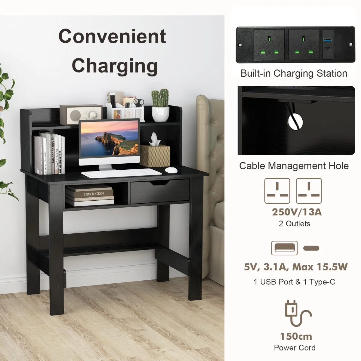 Transformeer je werkruimte met ons computerbureau, ontworpen om aan je studie- en werkbehoeften te voldoen. Het geïntegreerde oplaadstation en het kabelgat in het bureau bieden gemakkelijke toegang tot stroom voor het aansluiten van verschillende elektronische apparaten. Het brede werkoppervlak en de open opbergplank geven je meer ruimte voor het archiveren en tentoonstellen van objecten. Met een open vak en een lade biedt dit bureau voldoende opbergruimte om je werkruimte schoon en georganiseerd te houden. Haal het computerbureau naar je thuiskantoor en maximaliseer je werkruimte perfect.