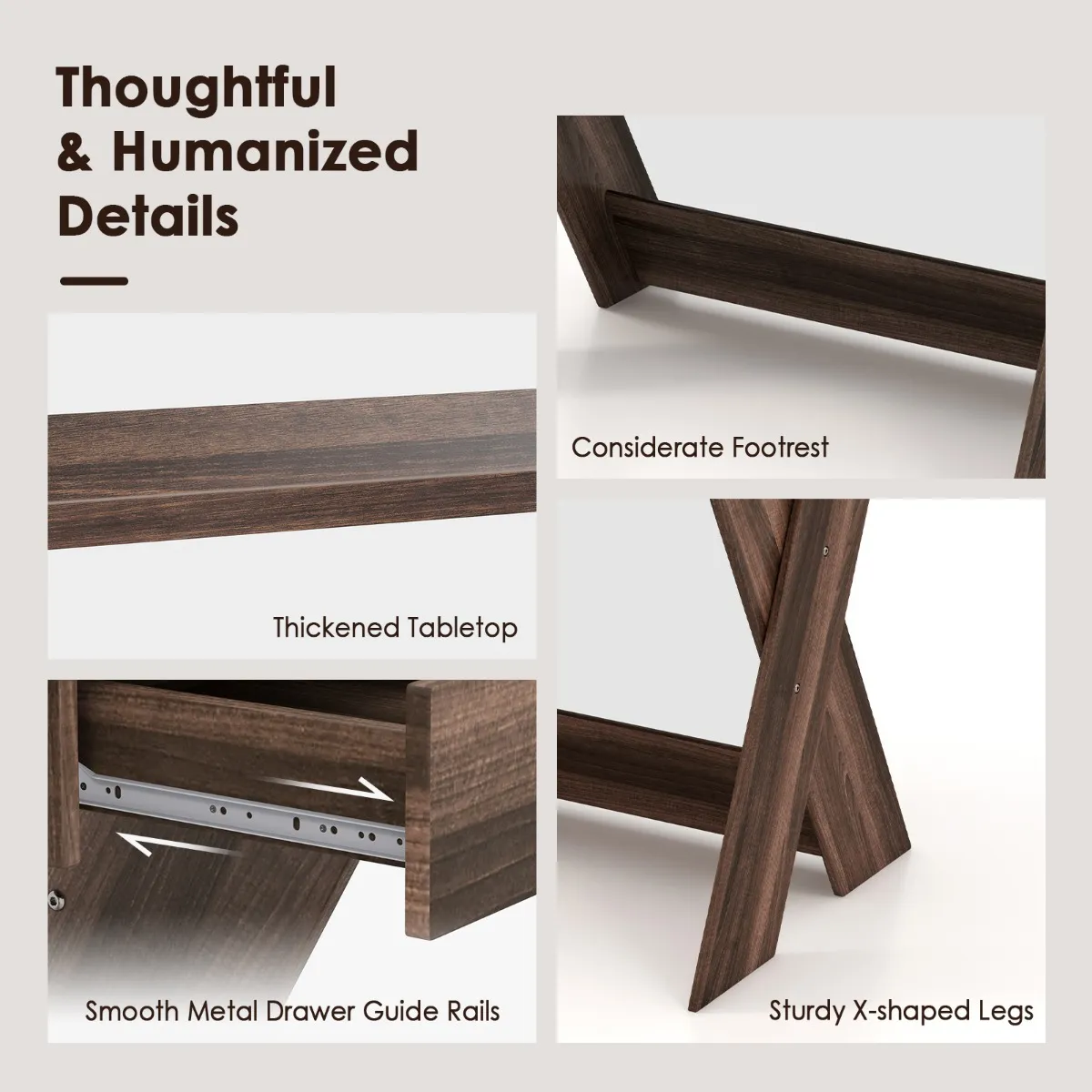 Geselecteerde materialen en stabiele structuur:Â Het bureau bestaat uit hoogwaardige materialen en is ontworpen voor duurzaamheid. Bovendien dragen de verdikte platen bij aan stabiele prestaties in het gebruik. De stabiele X-vormige poten ondersteunen de bureautafel en zorgen voor extra stabiliteit.