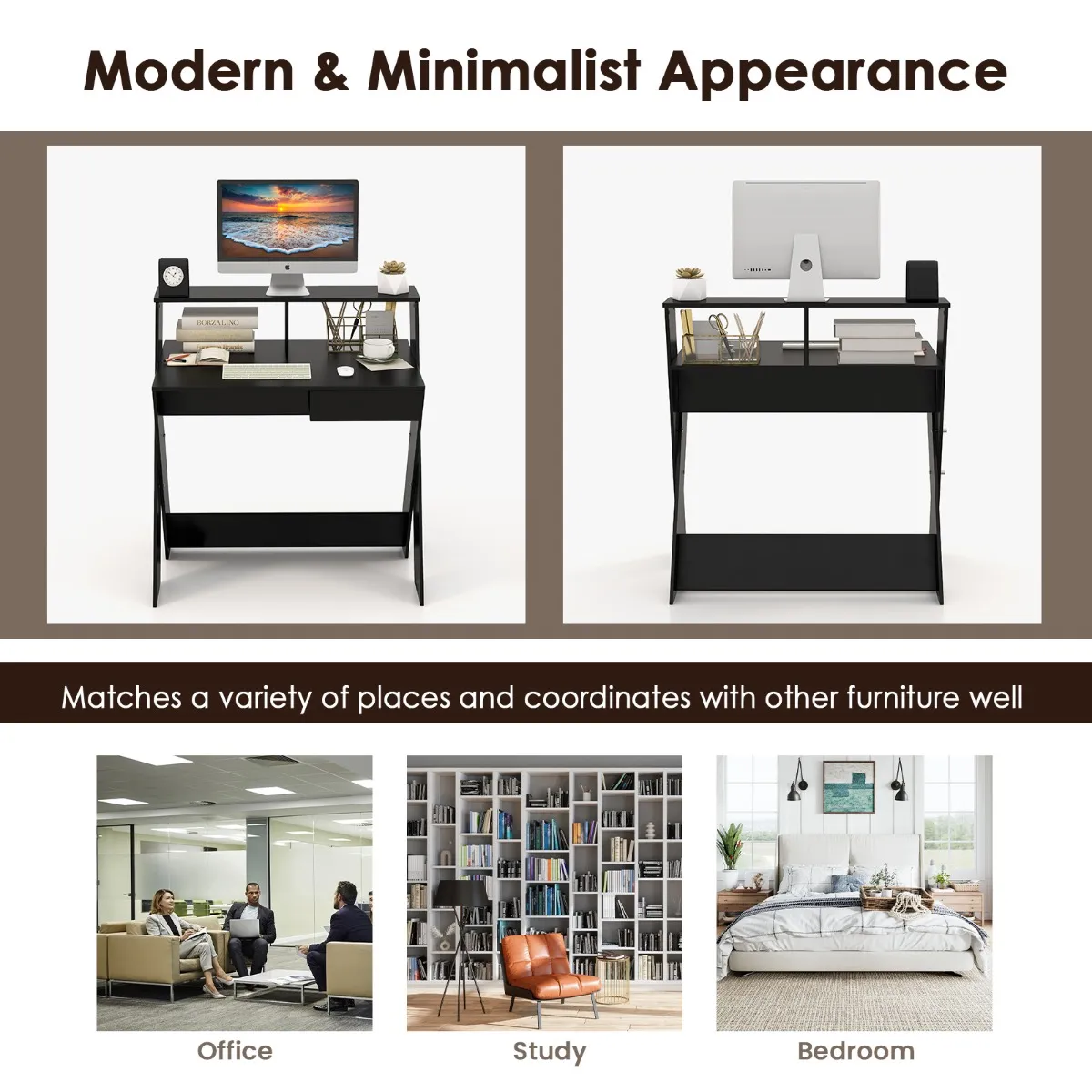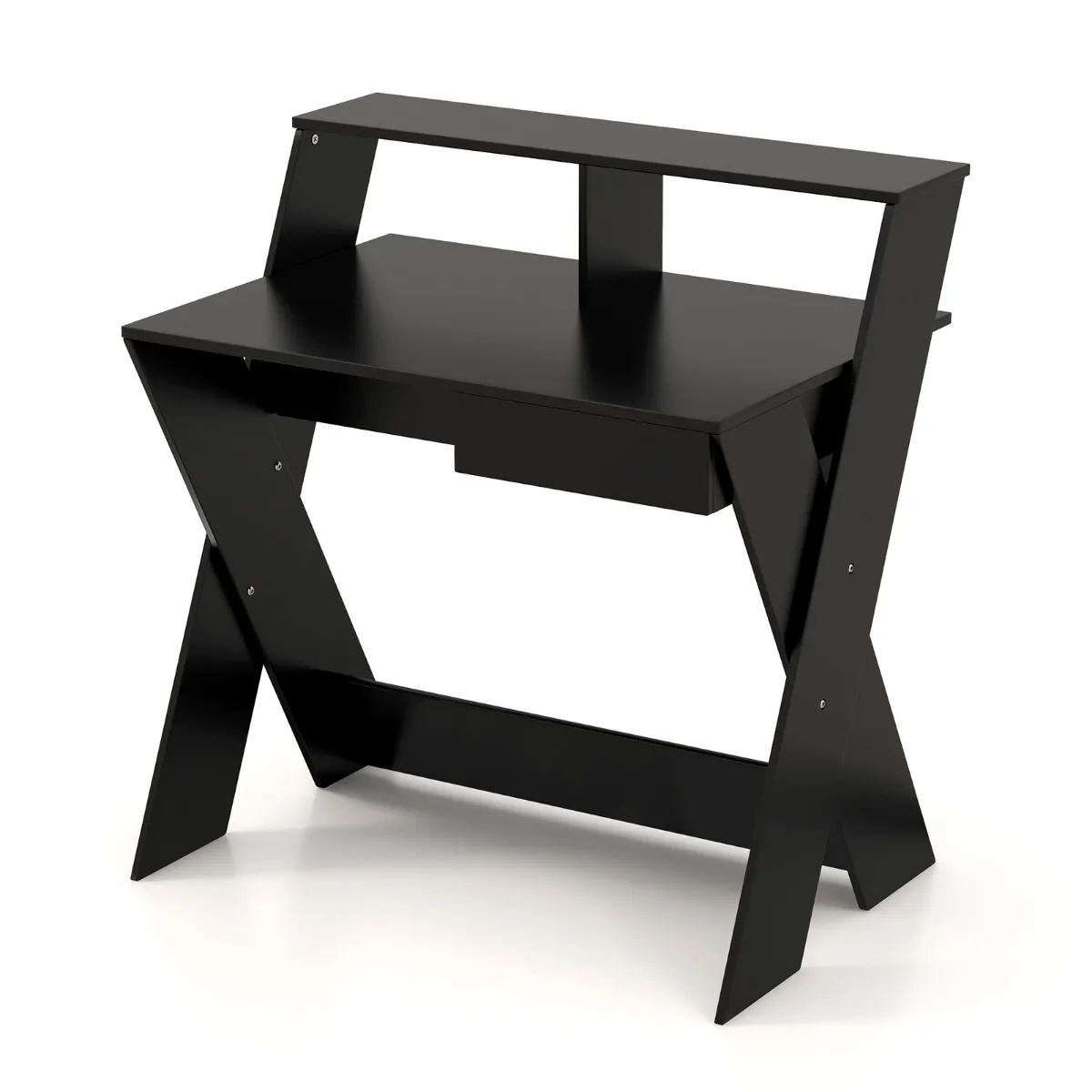 Het bureau is uitgerust met een monitorverhoging met bovenste en onderste uitsparing en een praktische uittrekbare lade. Daardoor beschikt hij over veel opbergruimte om de belangrijkste dingen die je dagelijks nodig hebt op hun plaats en binnen handbereik te houden. Dankzij de ergonomische monitorverhoging kun je comfortabel op ooghoogte naar het scherm kijken. En de moderne computertafel wordt vaak gebruikt op kantoor, werkkamer, slaapkamer enz.