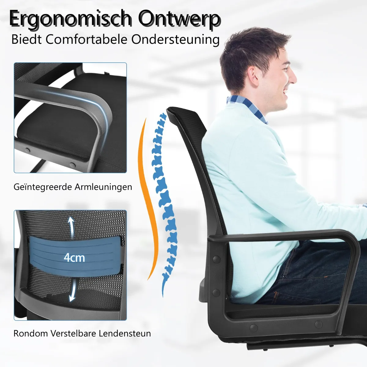 Voorzien van verstelbare lendensteun voor ergonomisch comfort