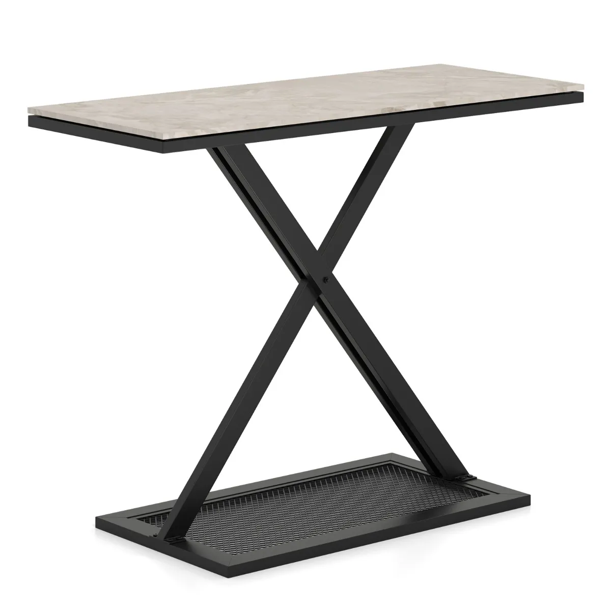 【Adembenemende moderne stijl】: Deze haltafel heeft een elegant blad van imitatiemarmer en het moderne ontwerp is erg aantrekkelijk. De geometrische structuur van het frame is niet alleen elegant, maar ook vrij extravagant qua smaak, wat genoeg is om de toon van de binnenruimte te versterken.