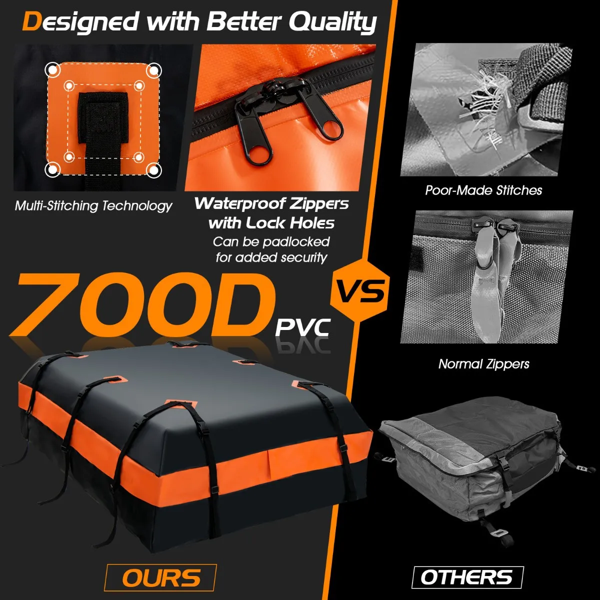Gaat mee in alle seizoenen: Geconstrueerd van geselecteerd PVC, is deze dakdrager waterdicht, sneeuw- en stofdicht zodat hij overal verder kan komen. Ook het verlengde regengordijn is voorzien van waterdichte ritsen aan de binnenkant om spullen droog te houden. De ritsen kunnen worden afgesloten (hangslot niet inbegrepen).