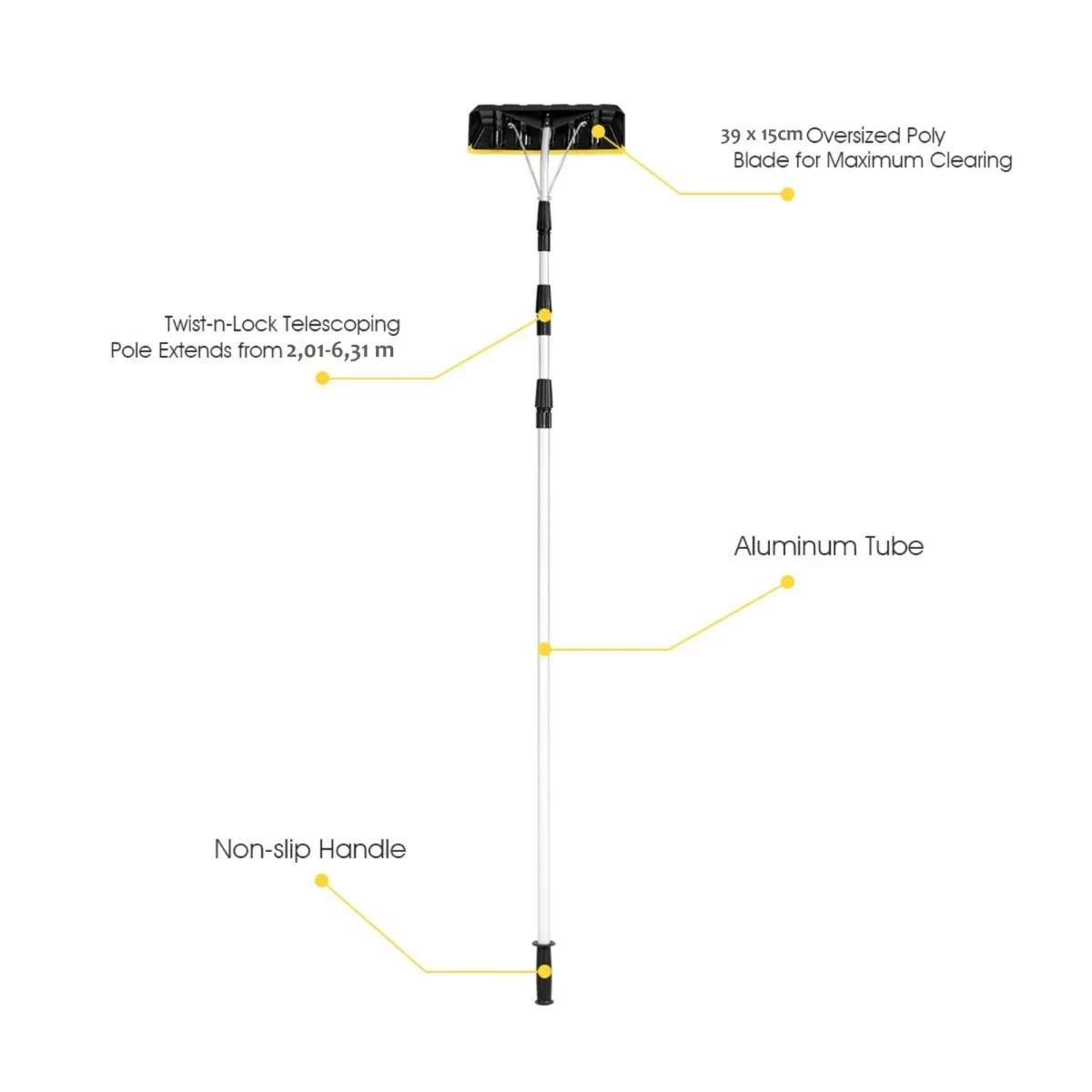 Onze sneeuwhark is van onschatbare waarde voor het aanpakken van sneeuw, stapels takken, natte bladeren en stof van je dak. De sneeuwhark heeft een extra breed blad. Het oversized blad verwijdert sneeuw op een efficiënte manier, zodat je je huis gemakkelijker kunt schoonmaken en onderhouden. Het sneeuwvlokontwerp beschermt je vloer tegen krassen. De hark kan worden versteld van 2,01 m tot 6,31 m om sneeuw uit elke hoek van het dak te verwijderen. Dit maakt de sneeuwhark perfect voor mensen van alle lengtes en biedt een veiligere manier om het huis schoon te maken zonder te hoeven klimmen. Het handvat is gemaakt van hoogwaardig aluminium en gaat jarenlang mee. Dankzij het duurzame, stevige aluminium hoef je je geen zorgen te maken over de betrouwbaarheid.