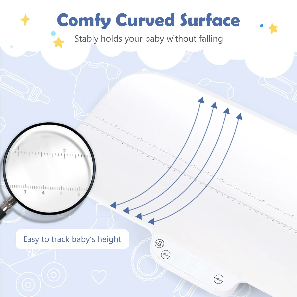 Multifunctioneel ontwerp: De weegschaal is geschikt voor het wegen van baby’s, peuters, puppies, enz. De weegschaal heeft een hoogtemeter in de pan om de lengte van je baby af te lezen (60 cm). Deze multifunctionele weegschaal is perfect voor gezinsgebruik, kinderziekenhuizen en dierenwinkels.