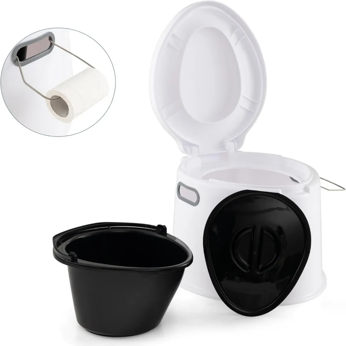 【Gemakkelijk schoon te maken en voorkomt geurtjes】Het toilet wordt geleverd met een verwijderbare binnen emmer, zodat u het kunt gebruiken met vuilniszakken voor geen schoonmaak. De binnenemmer heeft een stevig handvat voor gemakkelijk dragen en schoonmaken. De binnenste en buitenste deksels kunnen effectief geuren afsluiten en de lucht fris houden.