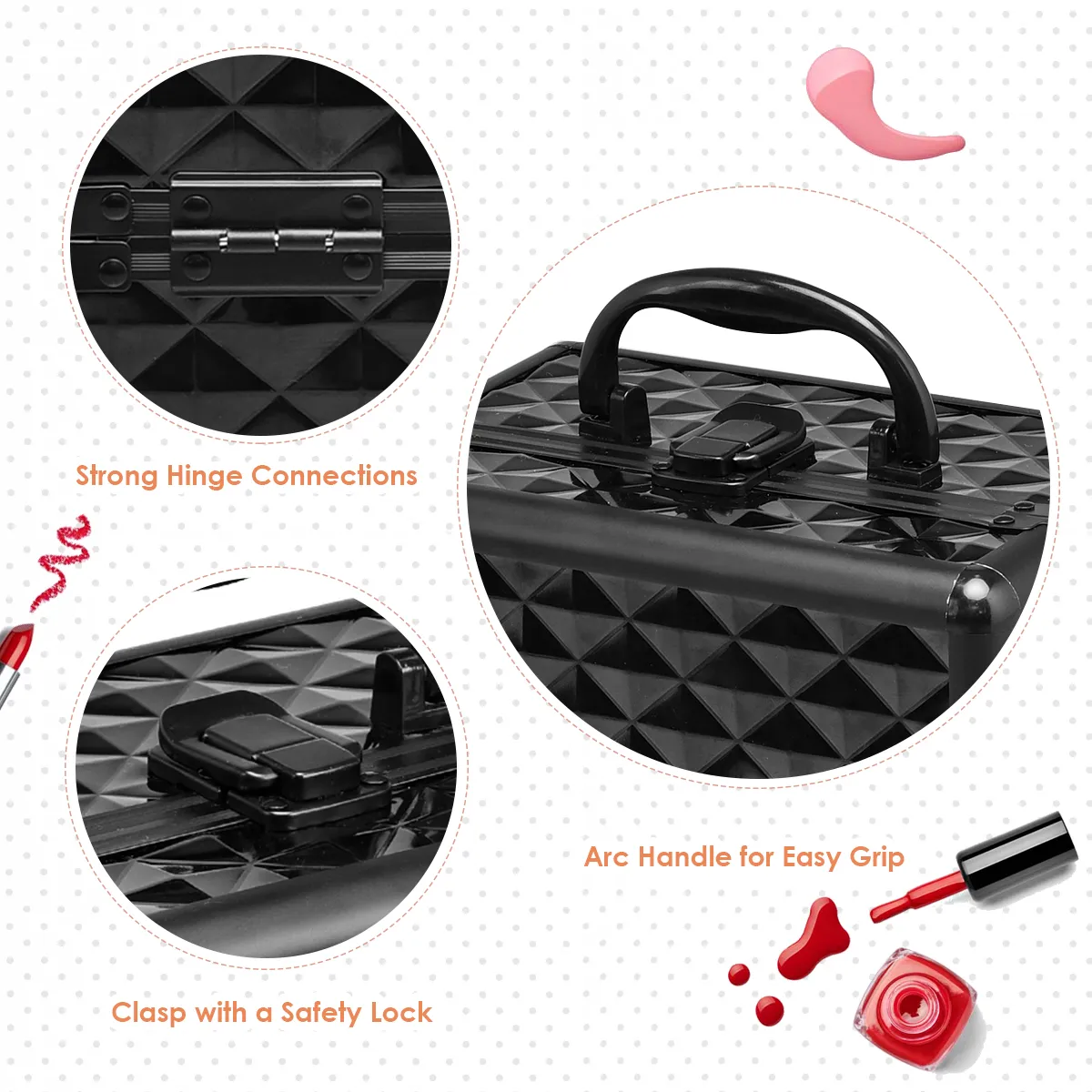 【Stijlvol en draagbaar】: Wordt geleverd met verzegelde sloten, houd uw cosmetische veiligheid. Perfect als gereedschapskist voor make-upartiesten, vriendin cadeau, badkamer make-up opslag of sieradendoos voor thuis.