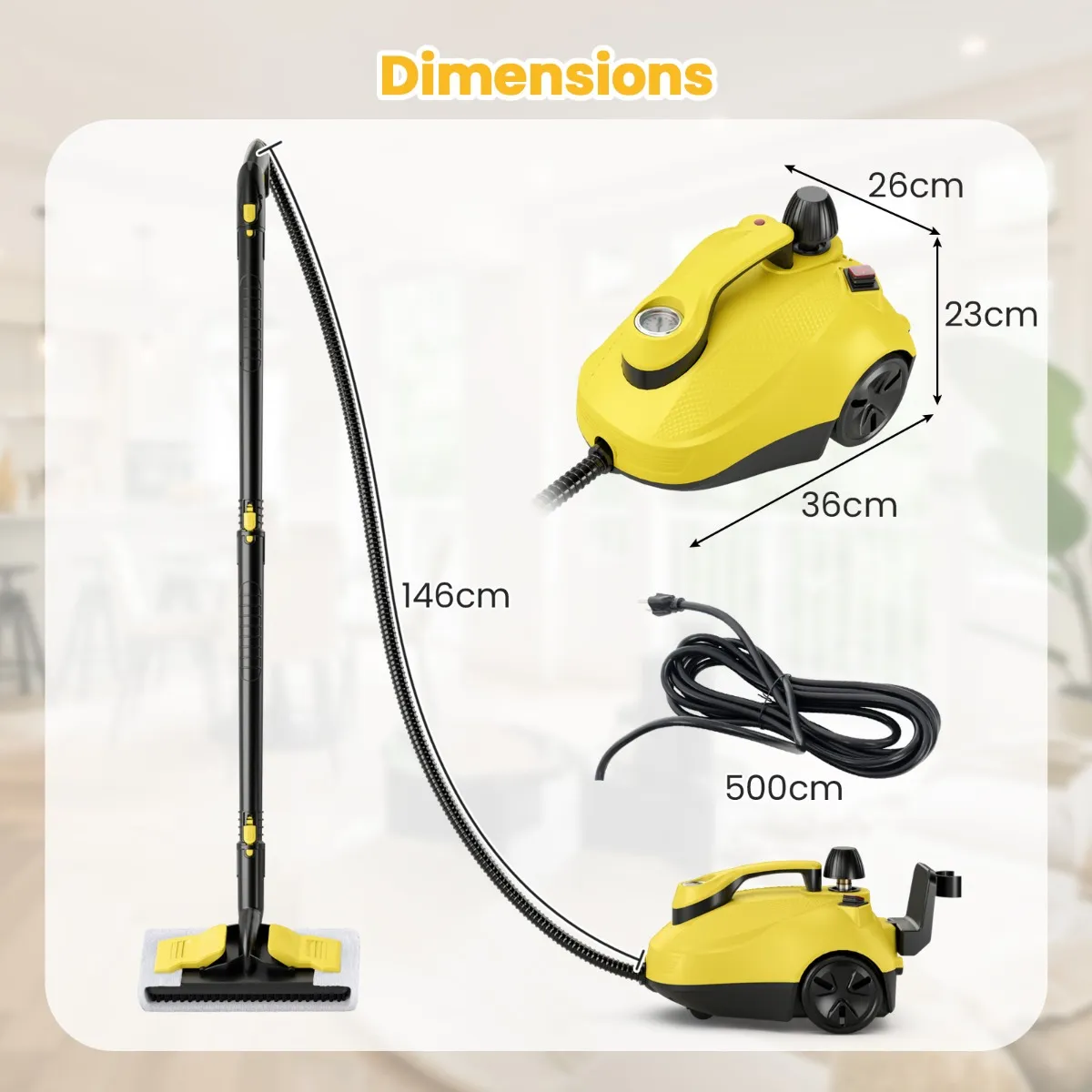 【Gemakkelijk te manoeuvreren】: Dankzij de ingebouwde wielen en een handvat kunt u het apparaat eenvoudig door uw hele huis verplaatsen. De stoomreiniger op wielen is uitgerust met een 5 meter lang netsnoer en een 146 cm lange flexibele slang, zodat u eenvoudig moeilijk te reinigen plekken kunt bereiken.