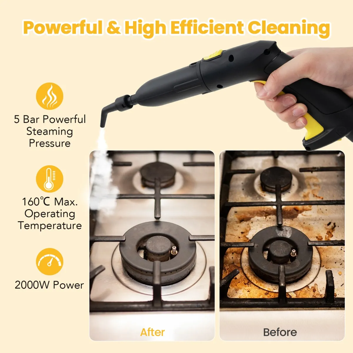 【Stoomreiniger met hoge prestaties】: Deze stoomreiniger van 2000 W verwarmt tot een maximale temperatuur van 160℃ en zorgt voor een diepe reiniging van verschillende oppervlakken. Dankzij de hoge druk van 5 bar verwijdert u eenvoudig vuil, aanslag en vlekken.