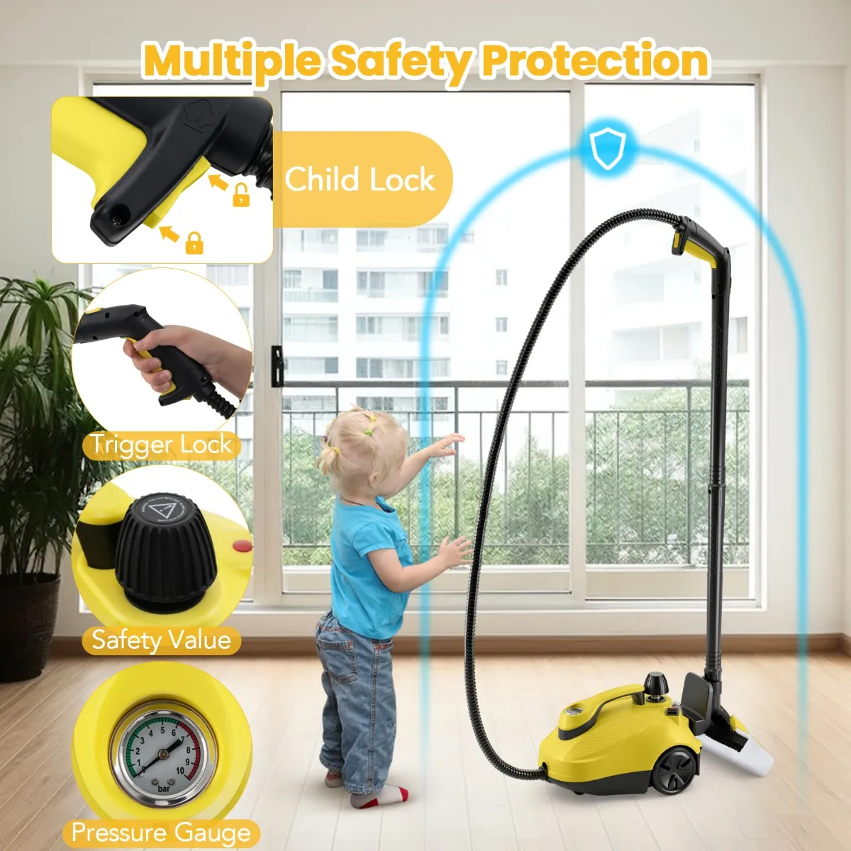 【Verbeterde veiligheidsfuncties】: Deze reinigingsmachine is uitgerust met een kinderslot voor een veilige schoonmaakomgeving thuis. Bovendien voorkomen de trekkervergrendeling en het veiligheidsventiel dat er stoom ontsnapt, terwijl de drukmeter de interne druk effectief controleert.