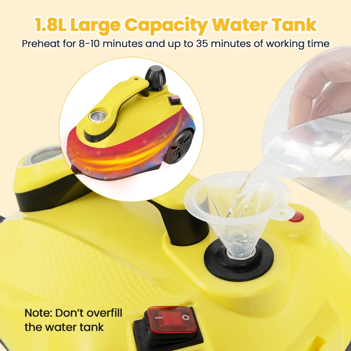 【Langere gebruiksduur】: Met een watertank van 1,8 liter levert deze stoomreiniger tot 35 minuten onafgebroken stoom, ideaal voor het reinigen van grote oppervlakken zonder dat u de tank regelmatig hoeft bij te vullen. De snelle opwarmtijd van 8-10 minuten verbetert de efficiëntie van uw schoonmaakroutine.
