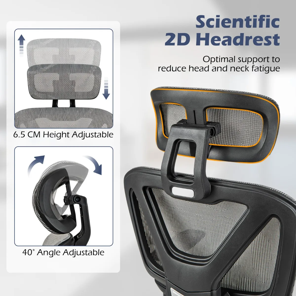 【Comfortabele hoofdsteun en armleuningen】: Om je nek en hoofd te ondersteunen is de stoel uitgerust met een hoofdsteun die 6,5 cm in hoogte verstelbaar is en tot 40° kan kantelen. Bovendien kunnen de armleuningen 7 cm naar boven en beneden, 4 cm naar voren en 4 cm naar achteren en 45° naar links en rechts worden versteld om je te helpen de meest comfortabele zithouding te vinden.
