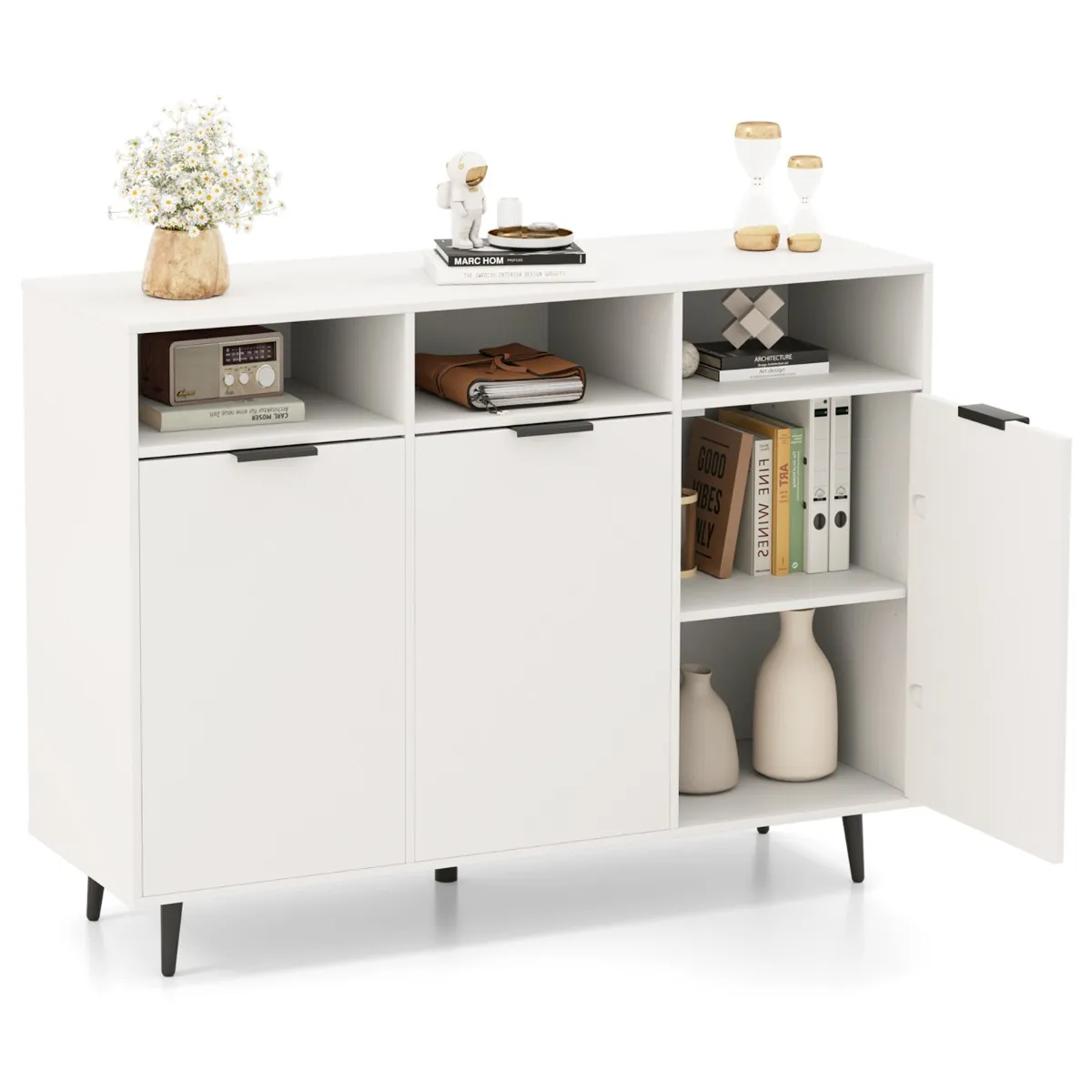 Deze koffiebarkast biedt een ruim design met een brede legplank, 3 open vakken en 3 kasten met deuren en biedt veel ruimte voor je huishoudelijke accessoires. De 5-voudig verstelbare planken maken een individuele aanpassing mogelijk om voorwerpen van verschillende hoogtes op te bergen en bieden een veelzijdige opbergoplossing. Voor de veiligheid is de buffetkast uitgerust met 2 kantelbeveiligingen. De verhoogde poten verbeteren niet alleen de stabiliteit, maar vergemakkelijken ook de reiniging eronder. Met zijn stijlvolle design is deze kast een ideale aanvulling voor je huis.