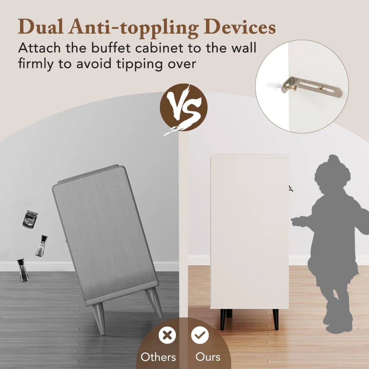 【Geavanceerde veiligheidsfuncties】: Veiligheid staat op de eerste plaats, daarom wordt de buffetkast met 2 kantelbeveiligingen stevig aan de muur bevestigd om omvallen te voorkomen. De softclose-scharnieren op de kastdeuren zorgen voor extra veiligheid en comfort.