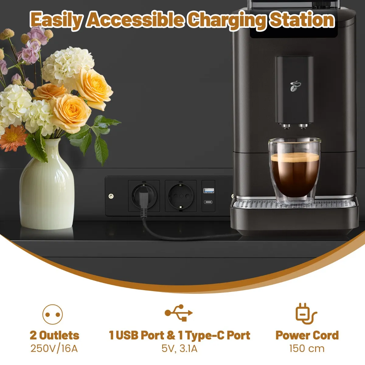 Met 2 stopcontacten en 2 USB-poorten voor eenvoudig opladen