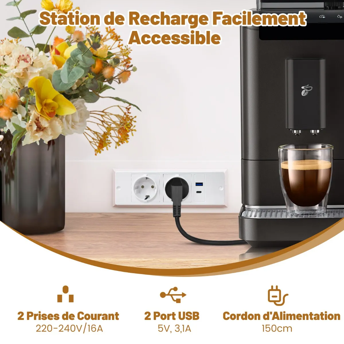 Met 2 stopcontacten en 2 USB-poorten voor eenvoudig opladen