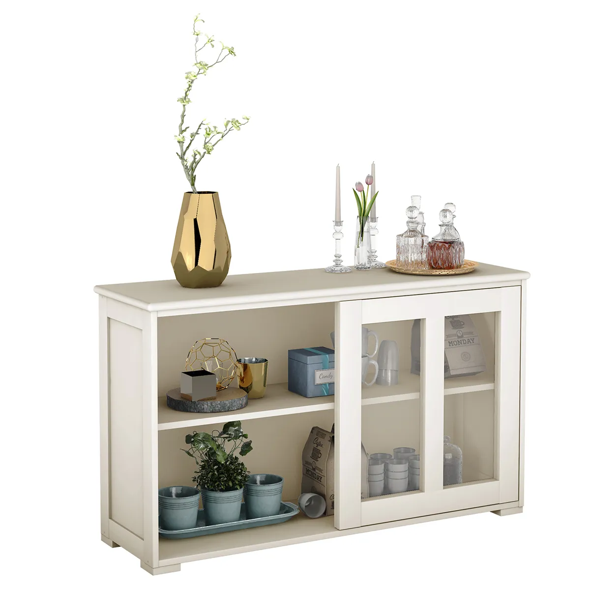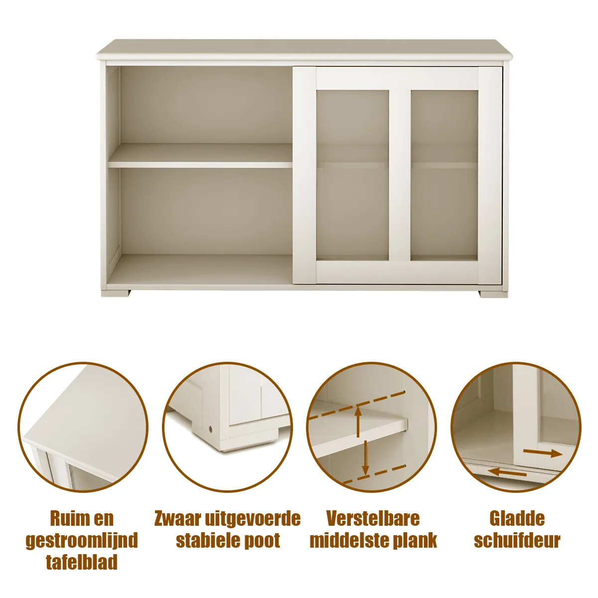 【Modern buffet dressoir】Deze buffetkast is voorzien van een schuifdeur met een crèmewitte afwerking. Het voegt een gevoel van elegantie toe aan uw huis.