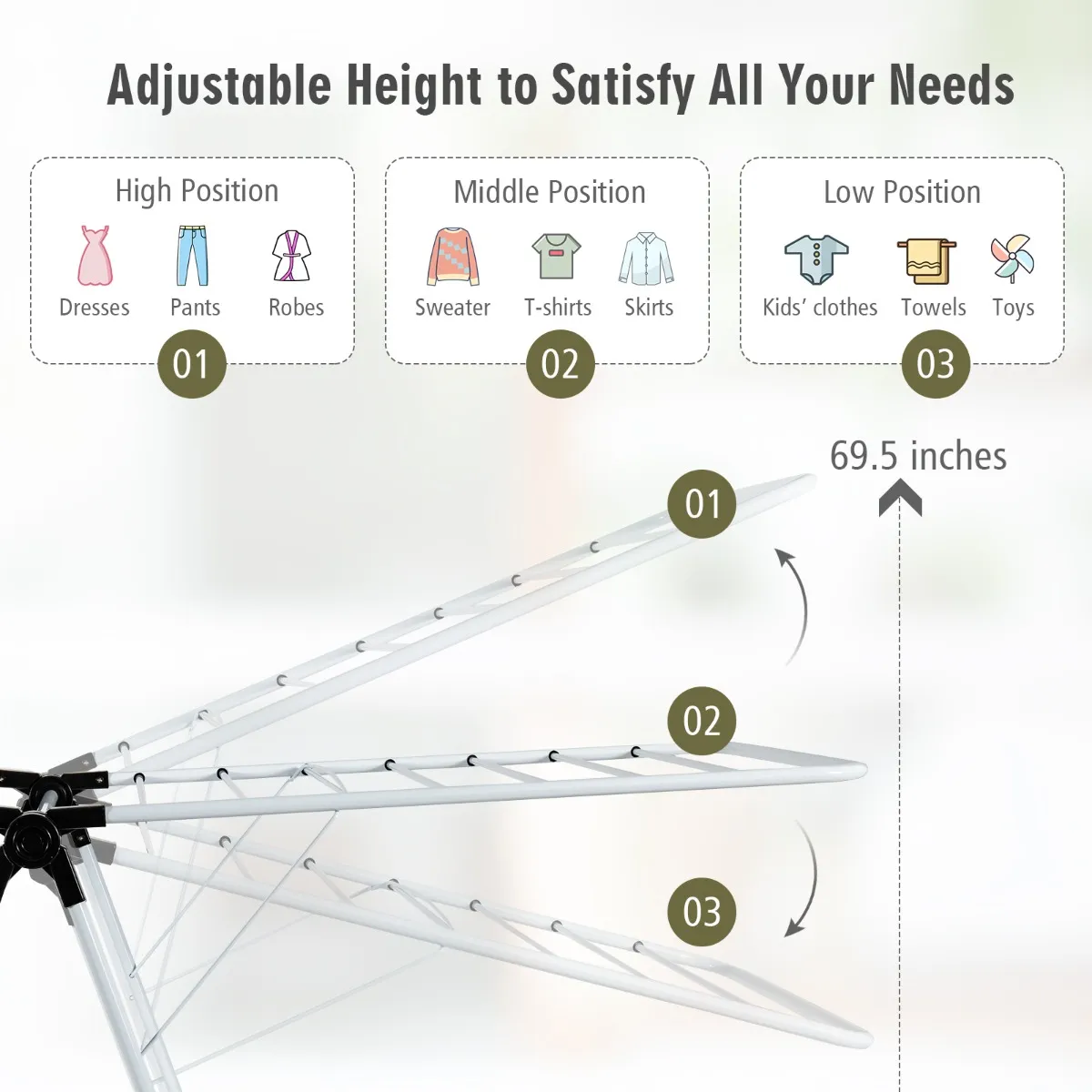 【De in hoogte verstelbare vleugels voldoen aan verschillende behoeften:】 Met de steunstang kun je de beste droogpositie voor je kleding vinden. Bovendien kun je met de verstelbare vleugels verschillende kledingstukken ophangen, zoals jurken, T-shirts en truien, waardoor elke stof snel droogt.
