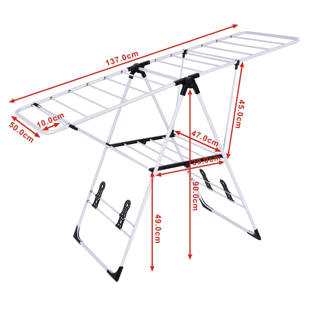 Stevige Constructie & Stabiliteit : Stevig materiaal samen met een solide constructie biedt het ophangrek een grote draagkracht tot 12 kg. Ook zal dit droogrek stevig in je kamer staan, en de antislipvoeten zorgen voor extra stabiliteit bij buitengebruik.