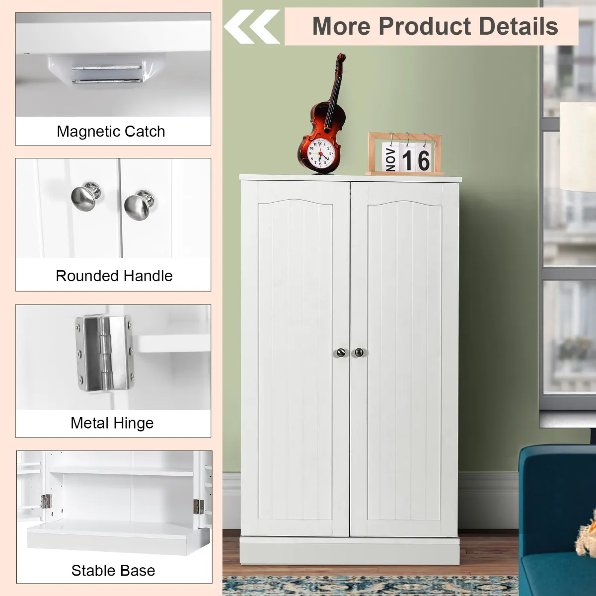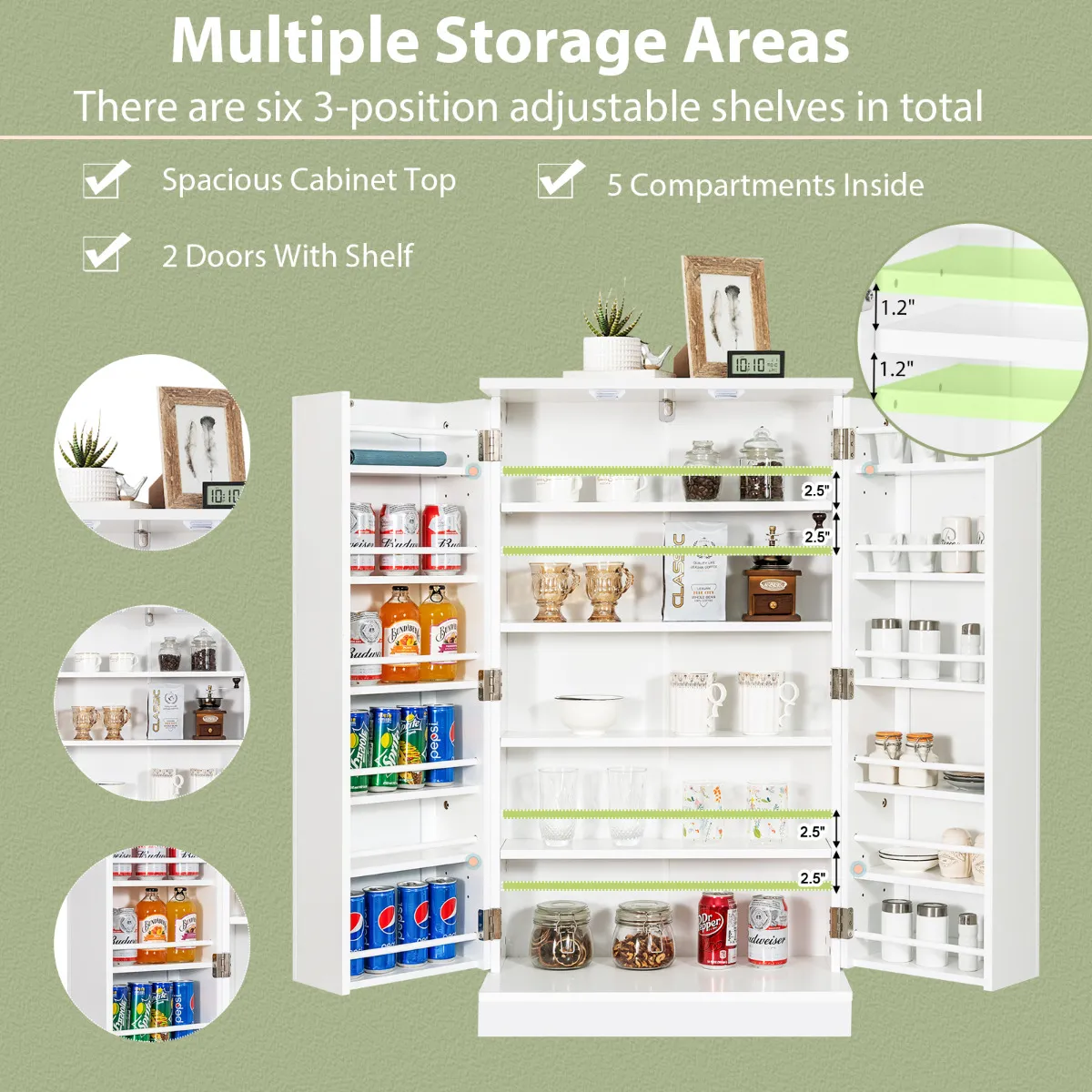 Meerdere niveaus ontwerp:Â Zonder twijfel, meerdere niveaus geseponeerd ontwerp is een goede manier om opslagruimte uit te breiden en sorteren diverse items. Met twee 6-vaks planken en een 5-vaks compartiment, biedt de keuken voorraadkast veel verborgen opslagruimte. Bovendien zijn de zes in 3 standen verstelbare planken binnenin gelijkmatig geplaatst voor een aangepaste indeling.