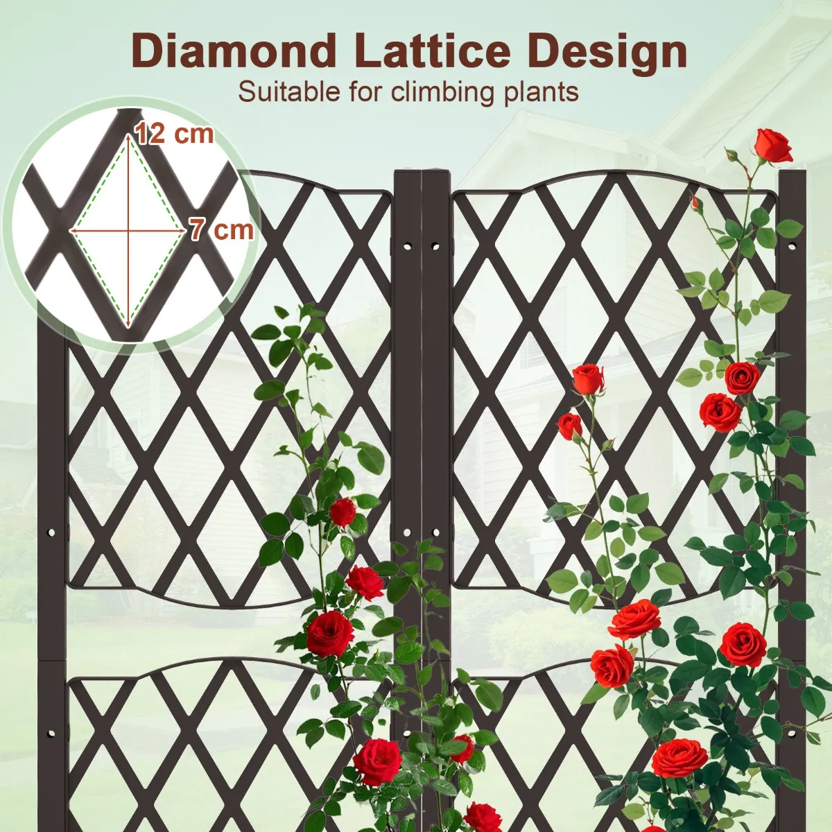 【Grote plantruimte】: Het unieke ruitvormige gaasrooster is perfect voor klimplanten. Het biedt stevige ondersteuning en voegt tegelijkertijd een rustieke en elegante charme toe. De plantenbak onderin biedt voldoende ruimte voor het kweken van groenten, fruit of bloemen.