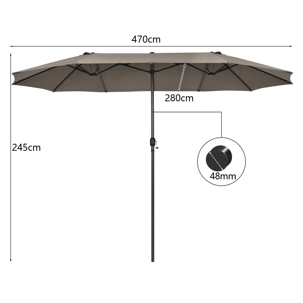 - Inhoud levering: 1 x Dubbele parasol1 x Handleiding
