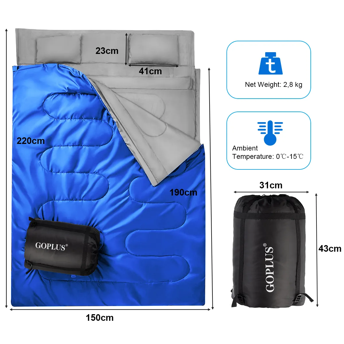 【GEMAAKT VOOR EXTREEM WEER】onze dubbele slaapzakken zijn ontworpen voor temperaturen onder het vriespunt, het kan je warm en gezellig houden, zelfs als het 0°C- 15°C is. Bovendien hebben onze slaapzakken een waterdicht, weerbestendig ontwerp en voorkomen ze dat je vocht krijgt – dit wordt bereikt door dubbel gevulde technologie en S-vormig gewatteerd ontwerp.