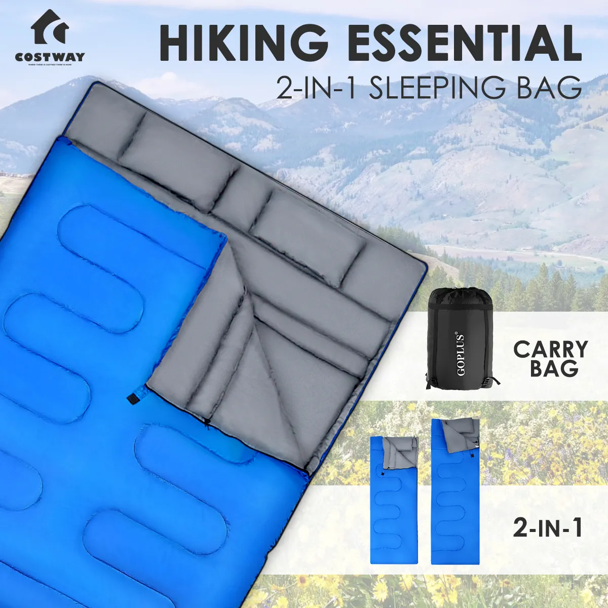 【2 IN 1 MULITIFUNCTIONEEL GEBRUIK】 Onze slaapzak is ontworpen om te worden gebruikt als een grote slaapzak en kan indien nodig ook worden opgedeeld in twee individuele slaapzakken. Ritsen aan beide zijden voor gemakkelijk in- en uitstappen. Speciaal ontworpen extra binnenvakken voor opslag om uw reis / buitenavontuur net iets gemakkelijker te maken.