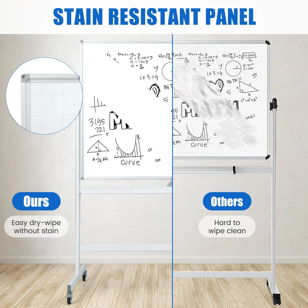 Extra ruimte om te schrijven: Ontdek grenzeloze creativiteit op ons omkeerbare whiteboard. Je kunt hem moeiteloos naar de andere kant klappen om extra ruimte te creëren om te schrijven, terwijl de vergrendelingsknop voor duurzaamheid bij het schrijven zorgt.