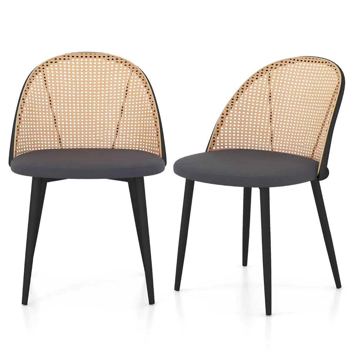 Met een ergonomische PE-rattan rugleuning biedt de moderne eetkamerstoel optimaal comfort en ademend vermogen, terwijl hij een vleugje tijdloze elegantie toevoegt aan uw ruimte. Bovendien zorgt de superieure gestoffeerde zitting, gevuld met spons met hoge dichtheid om vermoeidheid te verzachten, voor een comfortabele zitervaring. De gestoffeerde stoelen met rotan rugleuning hebben metalen poten en een stevige structuur. Met hun rugleuning in een natuurlijke kleur en slanke metalen poten passen de armloze keukenstoelen naadloos in diverse omgevingen, zoals cafés, keukens en woonkamers. Dankzij de antislipkussentjes krast uw vloer niet bij het verplaatsen van de stoel. Bovendien vereenvoudigt de geïntegreerde stoel en rugleuning de montage aanzienlijk!