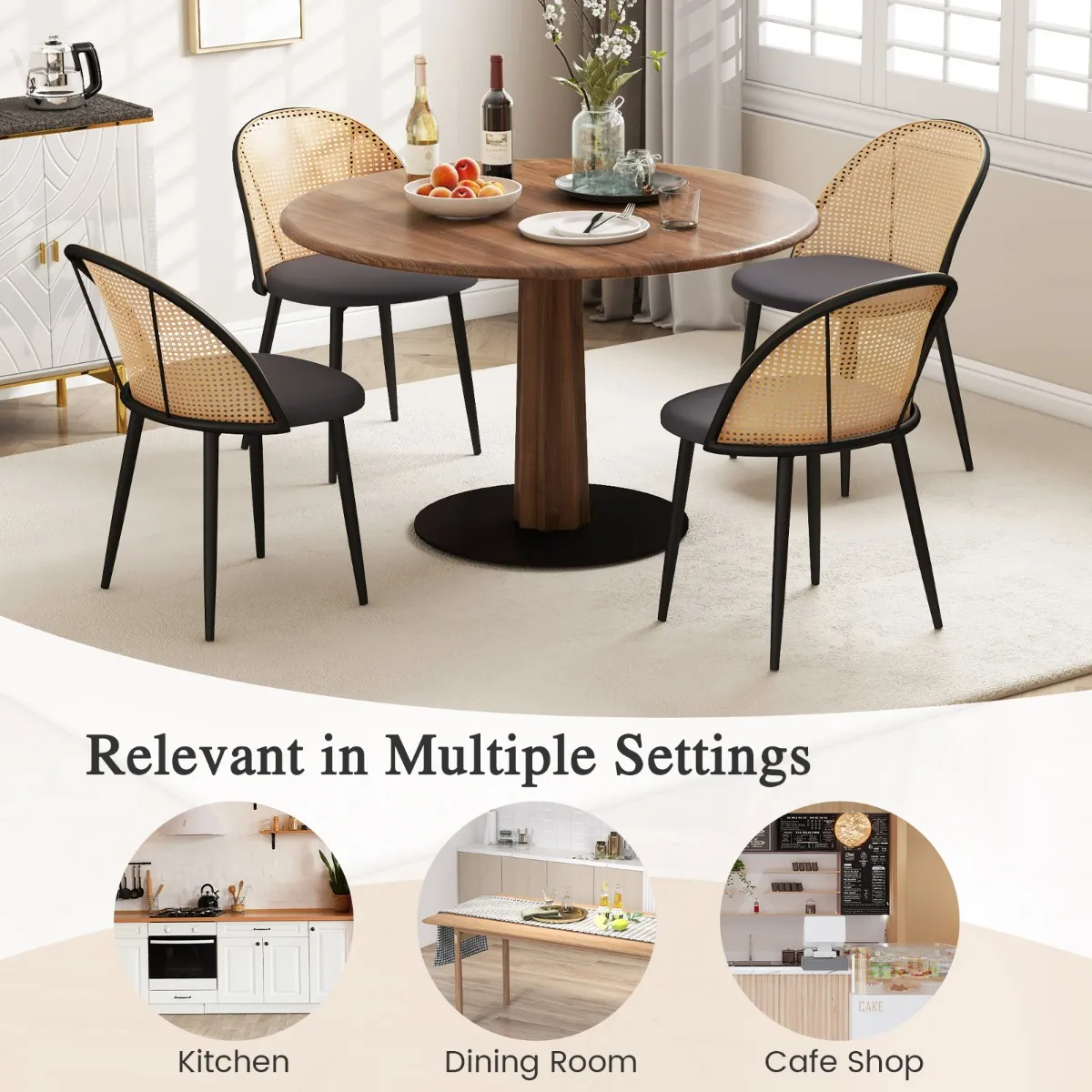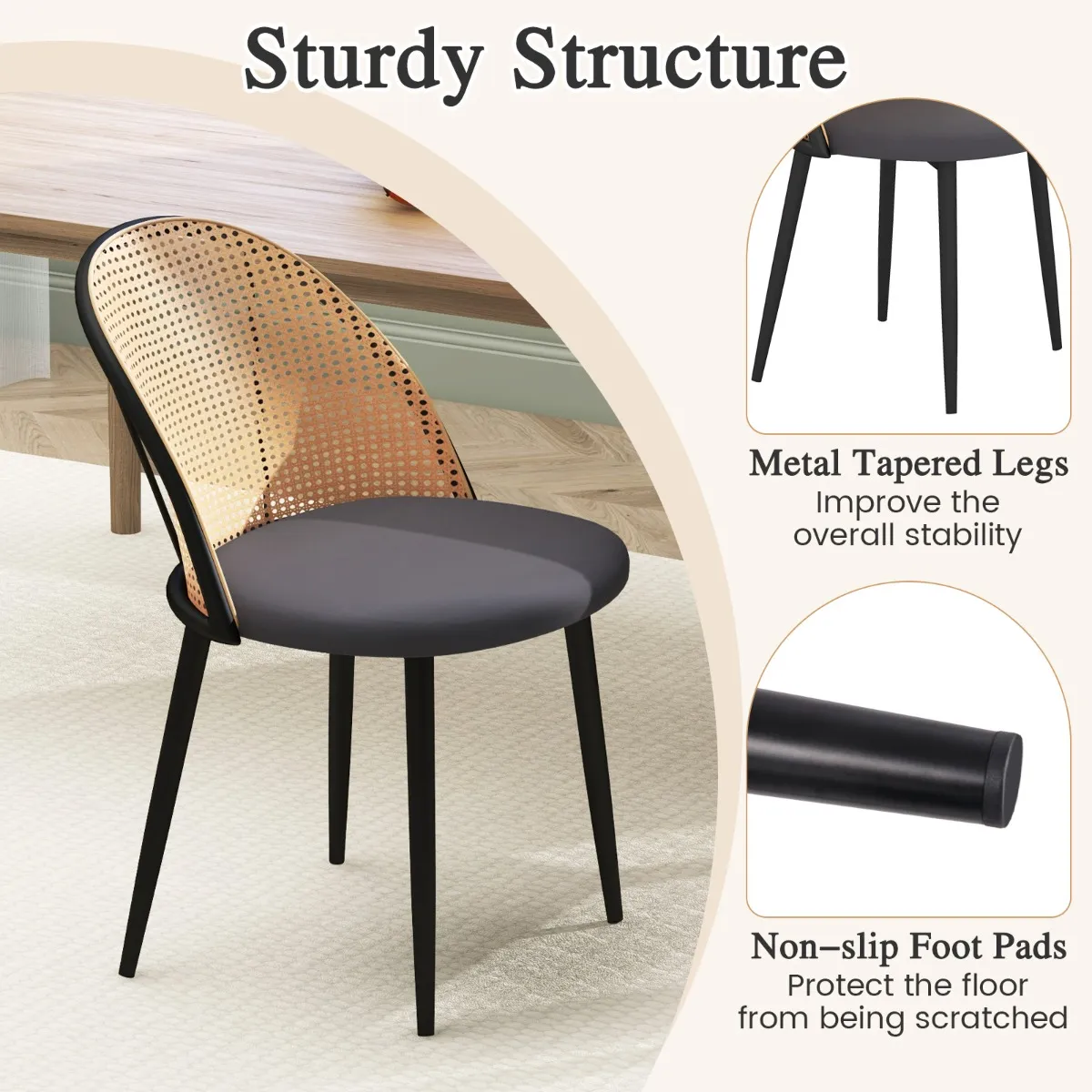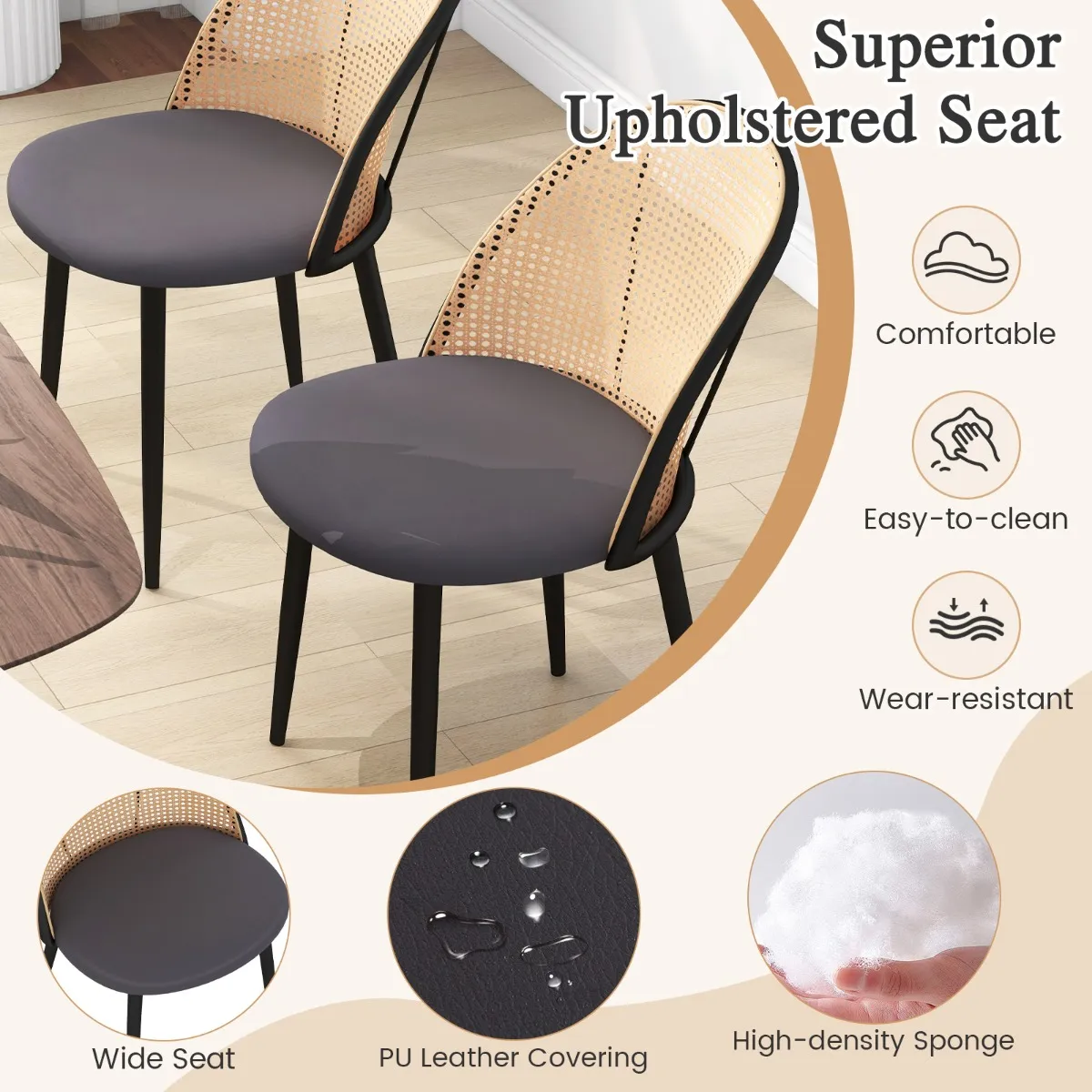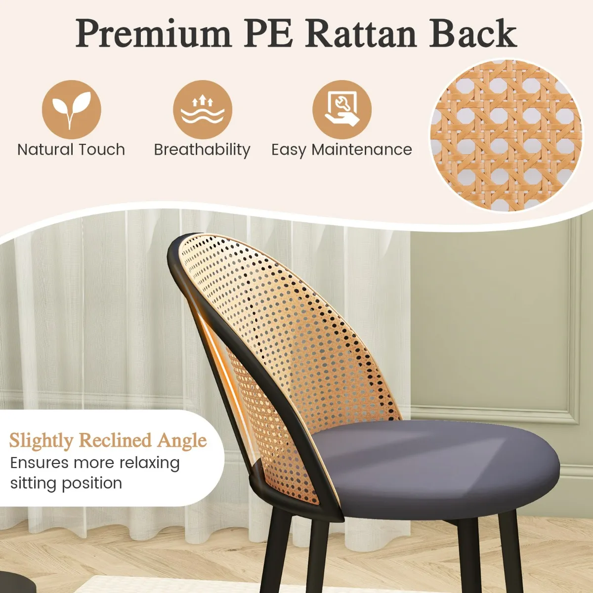 【Geschikt voor meerdere omgevingen】: Uitgerust met een rugleuning in rotan-stijl en een neutraal grijs kussen, passen de eetkamerstoelen zonder armleuningen naadloos in elke ruimte met hun mid-century design, zoals eetkamers, keukens, woonkamers, cafés of restaurants.