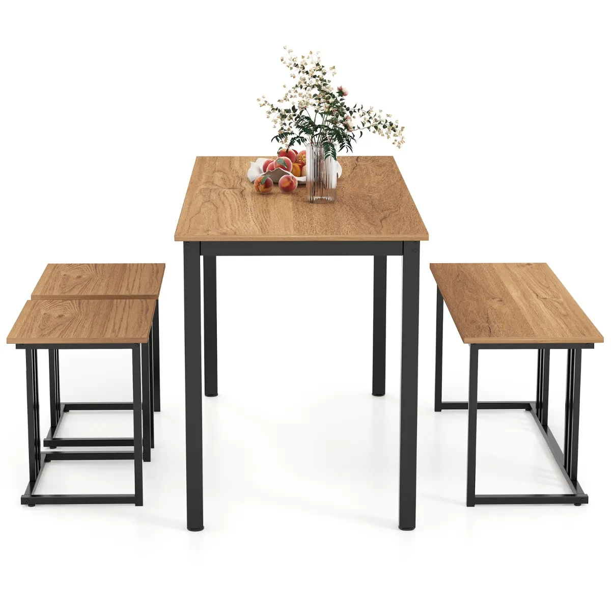 【4-delige eettafelset】: De industriële eettafelset bestaat uit een eettafel, een bank en 2 krukken en biedt plaats aan maximaal 4 personen, zodat je met je gezin van ontbijt of diner kunt genieten of met je vrienden een middagthee kunt drinken.