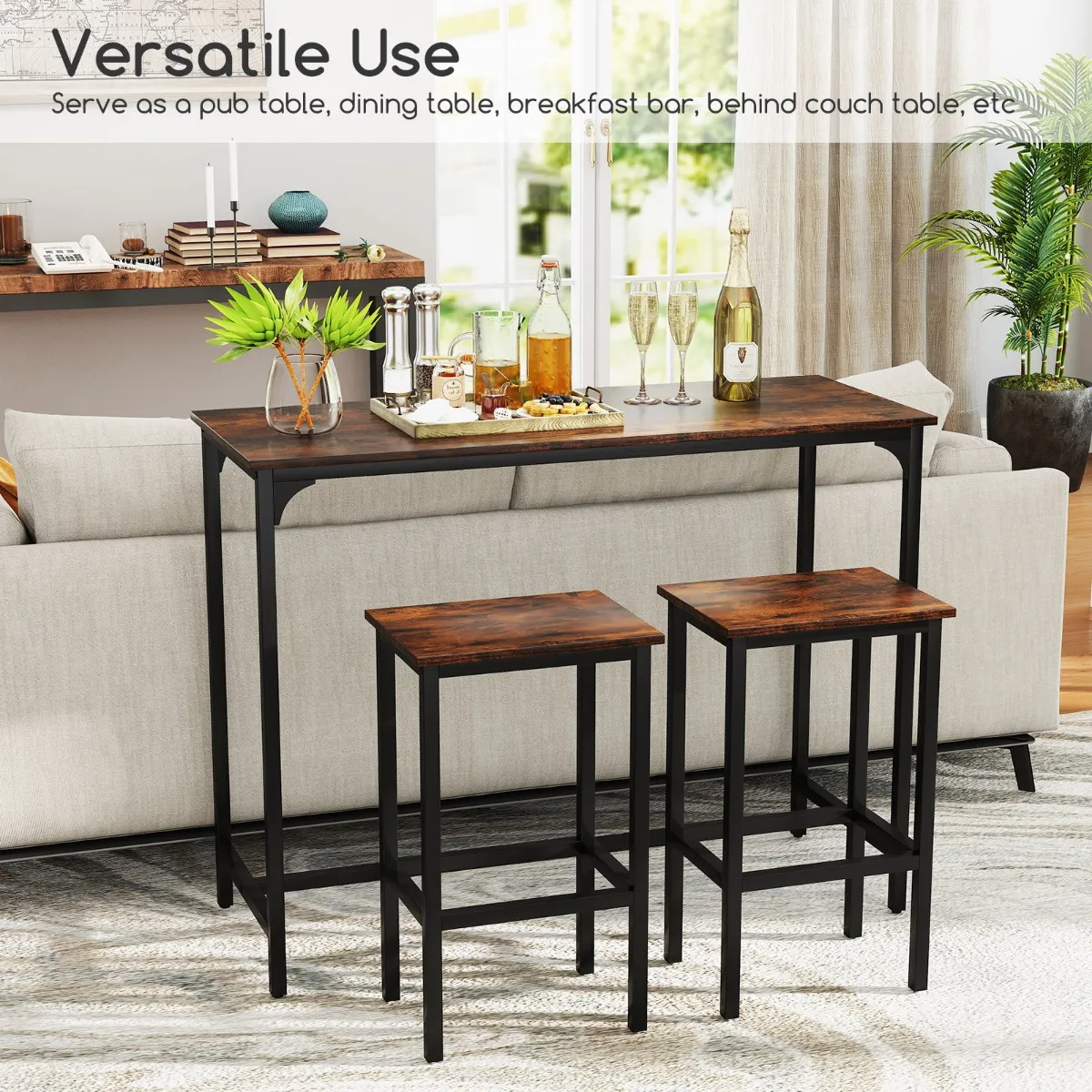 【Ideaal voor een intiem diner】: Deze 3-delige eetset bestaat uit een rechthoekige hoge tafel van 120 x 48 x 91 cm (L x B x H) en 2 barkrukken van 40 x 30 x 66 cm (L x B x H). Het is een perfecte aanvulling voor bars, eetkamers, ontbijthoekjes of zelfs achter een bank.
