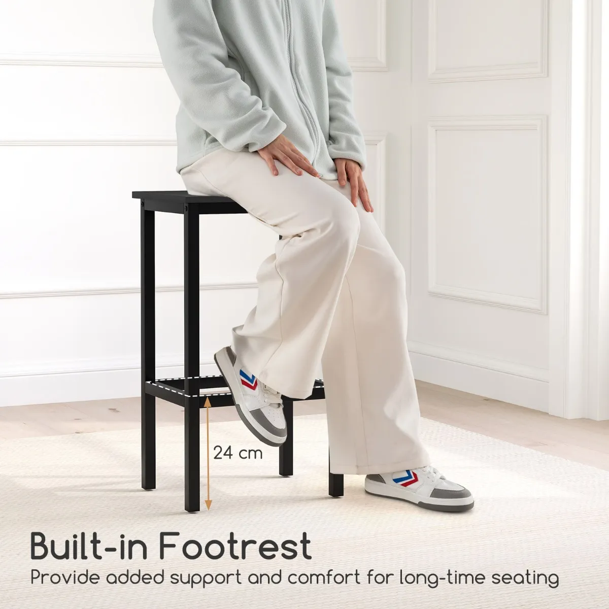 【Extra comfortabel en ruimtebesparend ontwerp】: De barkrukken zijn voorzien van ingebouwde voetensteunen, die extra ondersteuning bieden bij langdurig zitten. Bovendien kunt u de krukken onder de tafel opbergen als u ze niet gebruikt. Hierdoor zijn ze ideaal voor kleine ruimtes of appartementen.