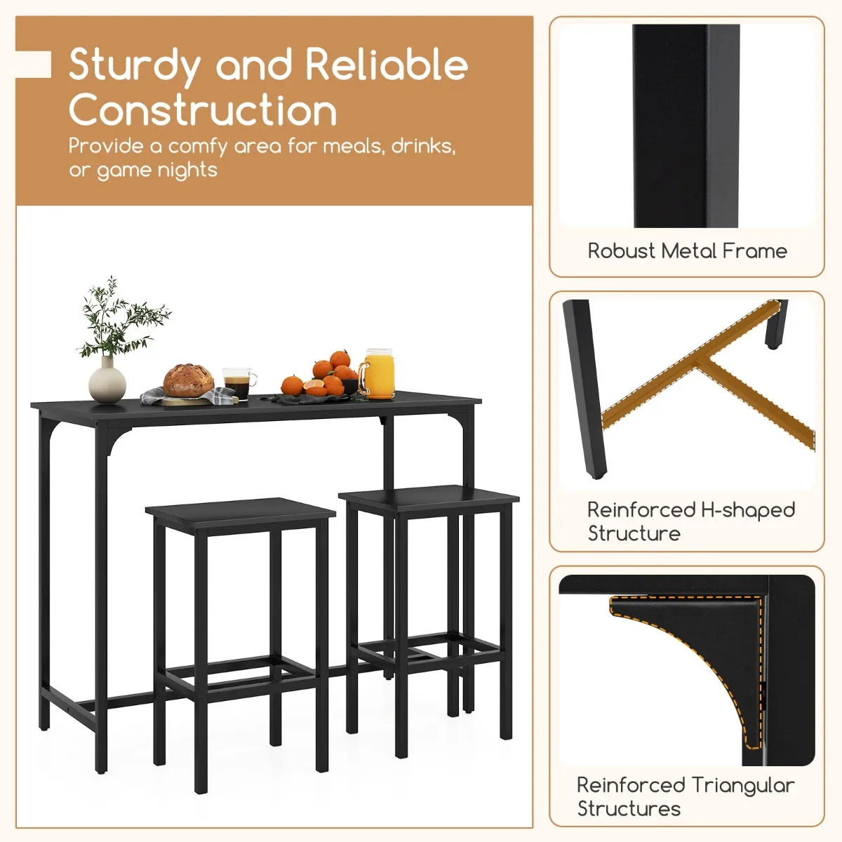 【Ideaal voor een intiem diner】: Deze 3-delige eetset bestaat uit een rechthoekige hoge tafel van 120 x 48 x 91 cm (L x B x H) en 2 barkrukken van 40 x 30 x 66 cm (L x B x H). Het is een perfecte aanvulling voor bars, eetkamers, ontbijthoekjes of zelfs achter een bank.