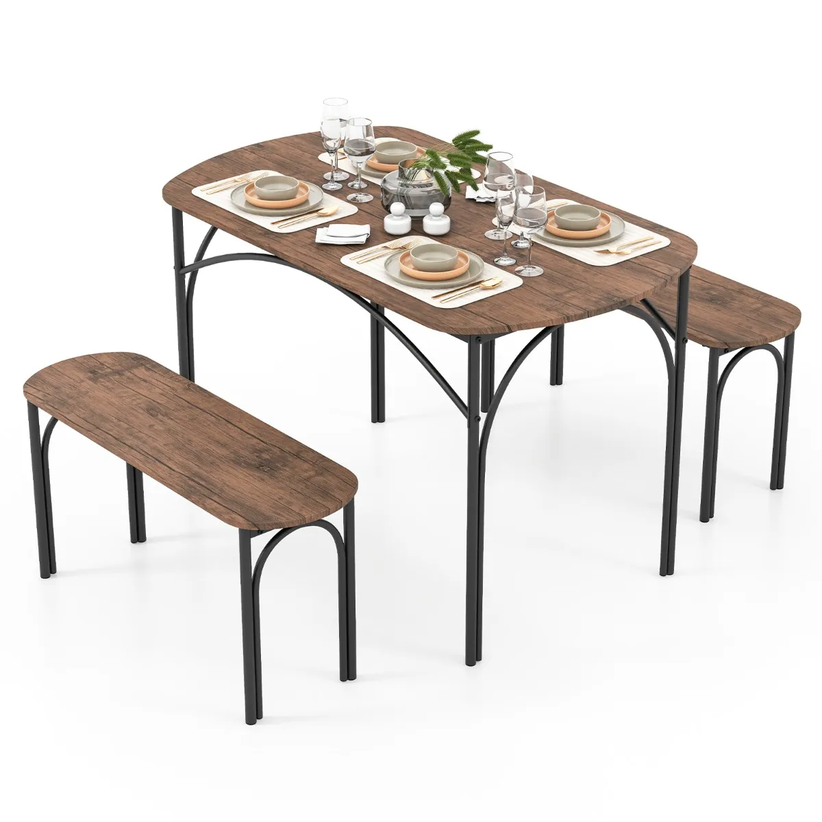 【Set van 3】: De eetset voor 4 personen bestaat uit een rechthoekige tafel en 2 banken, en biedt voldoende zitruimte voor maaltijden met het hele gezin en gezellige vrienden. De tafel is 120 x 70 x 76 cm (L x B x H) groot en elke bank is 90 x 30 x 45 cm (L x B x H).